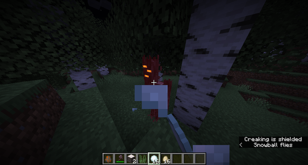 When attacking a creaking that has been summoned via a spawn egg or commands, and not through use of the creaking heart, with non-damaging projectiles, such as snowballs and eggs, the subtitles will erroneously display "Creaking is shielded" instead of "Creaking hurts", causing inconsistency with other mobs.