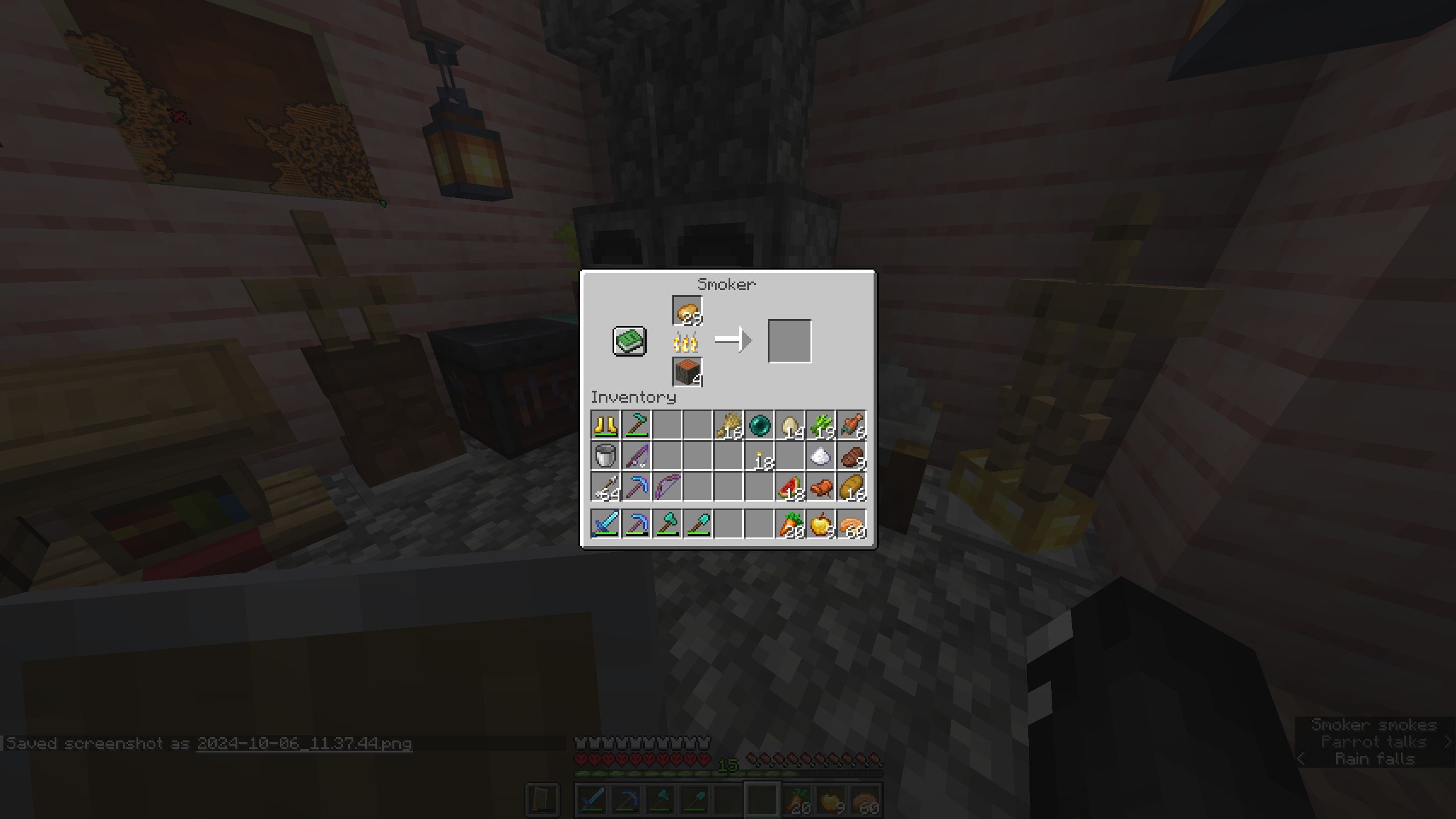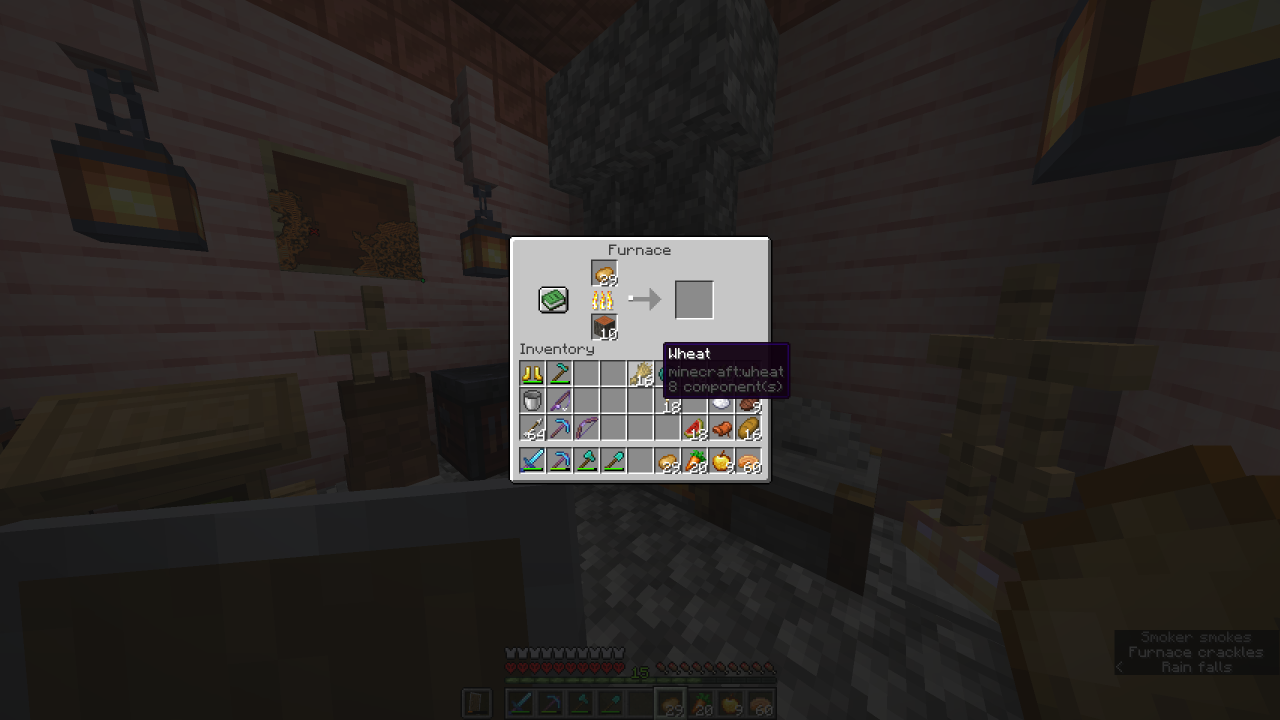 1. Place items into the furnace/smoker in survival minecraft (eg - potatoes and logs to create baked potatoes).