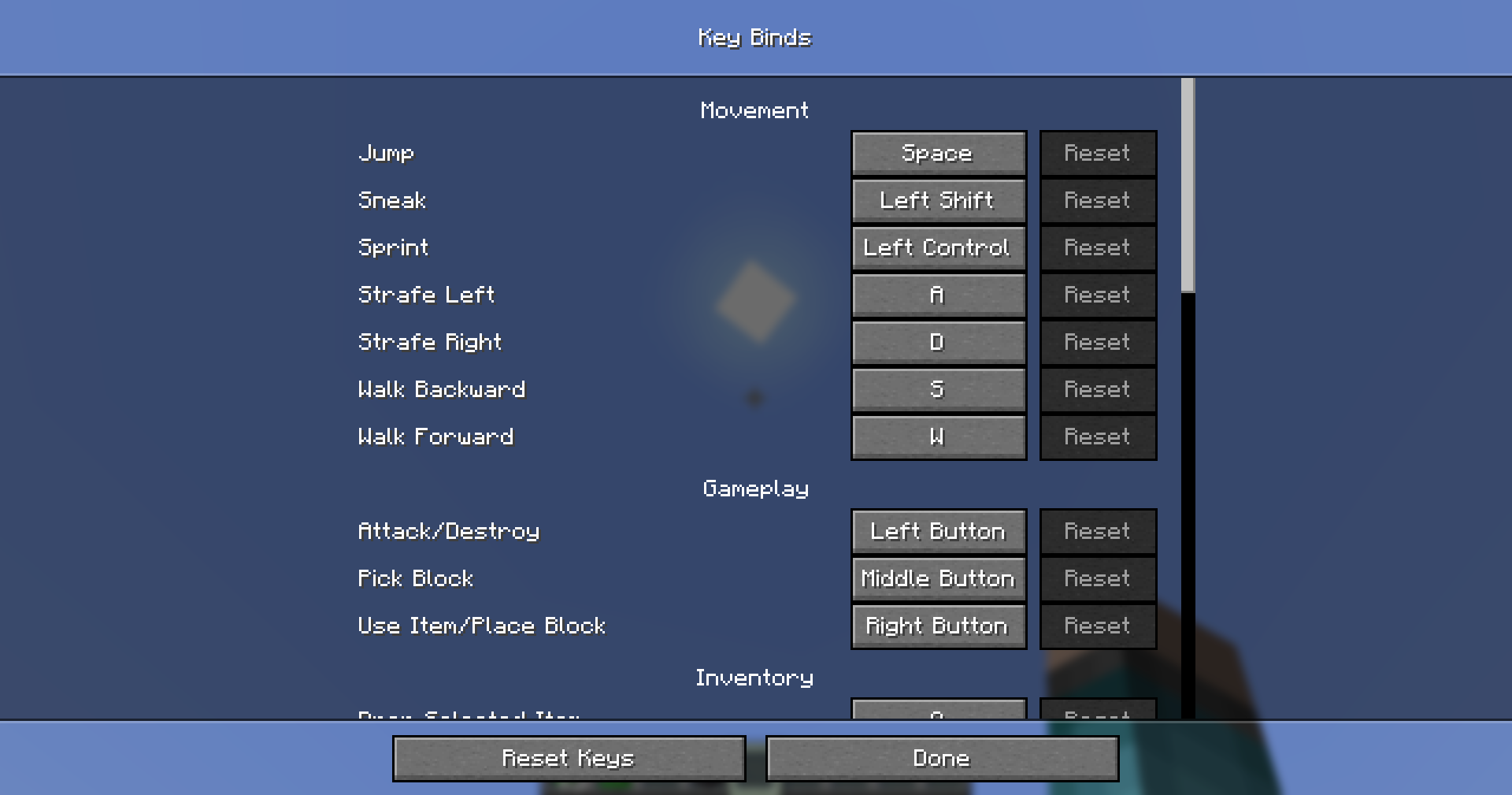 Navigate to the key binds menu.