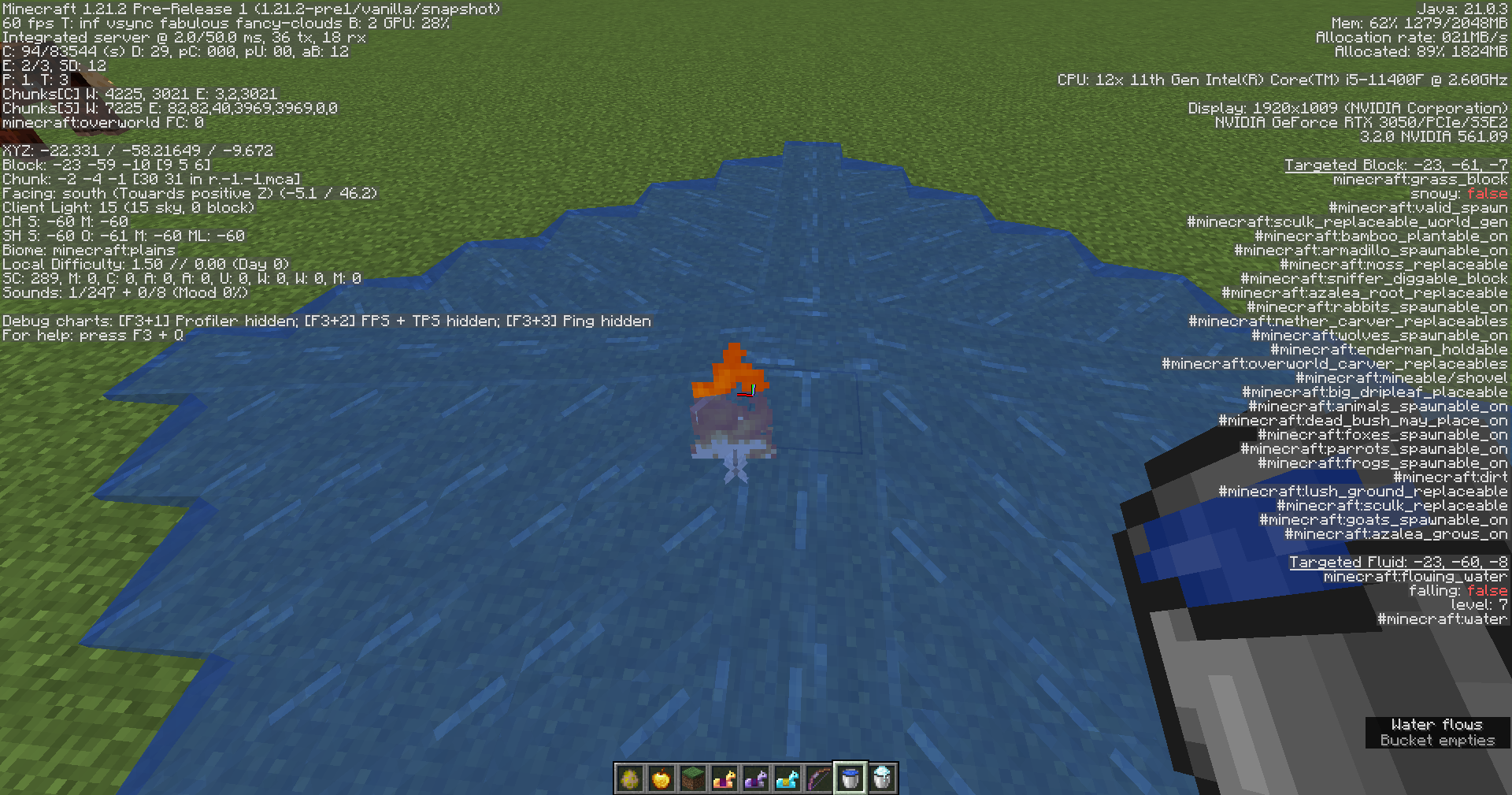 Give yourself a water bucket, as well as a Flame bow using this command: