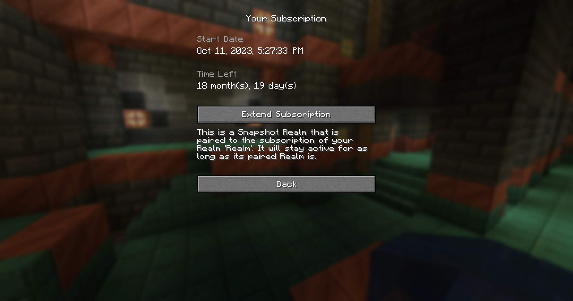 There are no shadows on text used to display the start date and time left of your realm subscription within the realms menu.