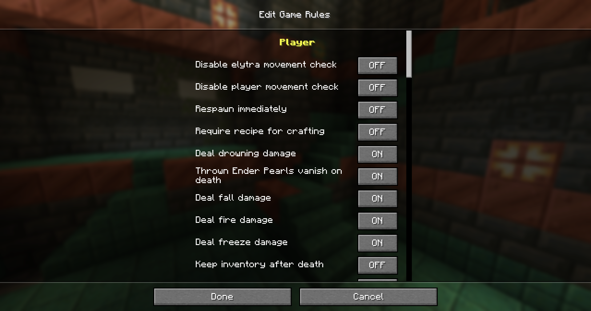 There are no shadows on text used to display the names of game rules within the game rules menu.
