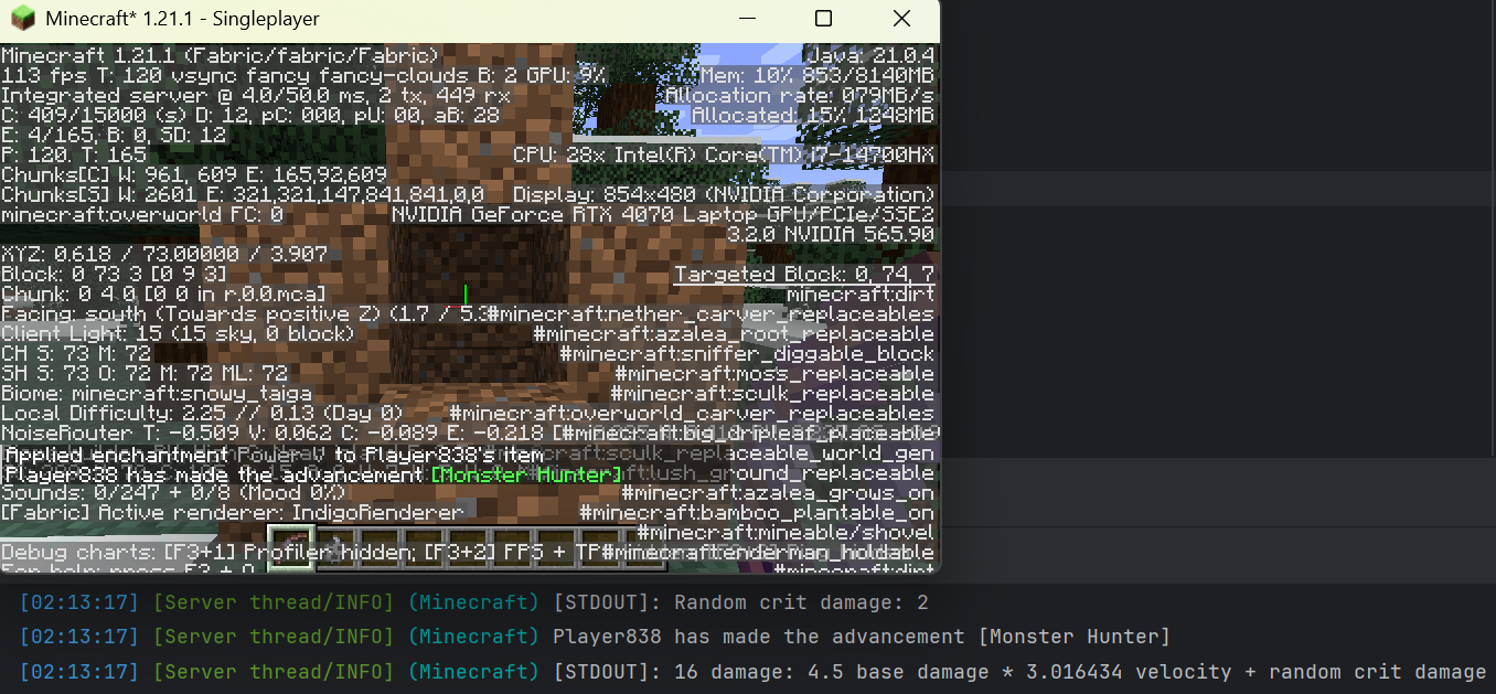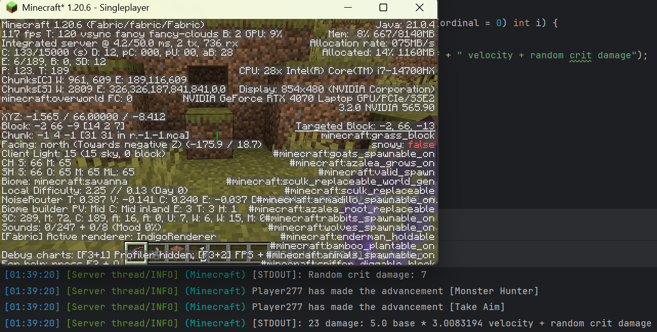 To fully verify this, I made a small Fabric mod for 1.20.6 and 1.21.1 that prints out the damage values used in the calculation in order to compare them, using a bow enchanted with Power 5. In the attached screenshots, it can be observed that the base damage values between versions are, in fact, different.