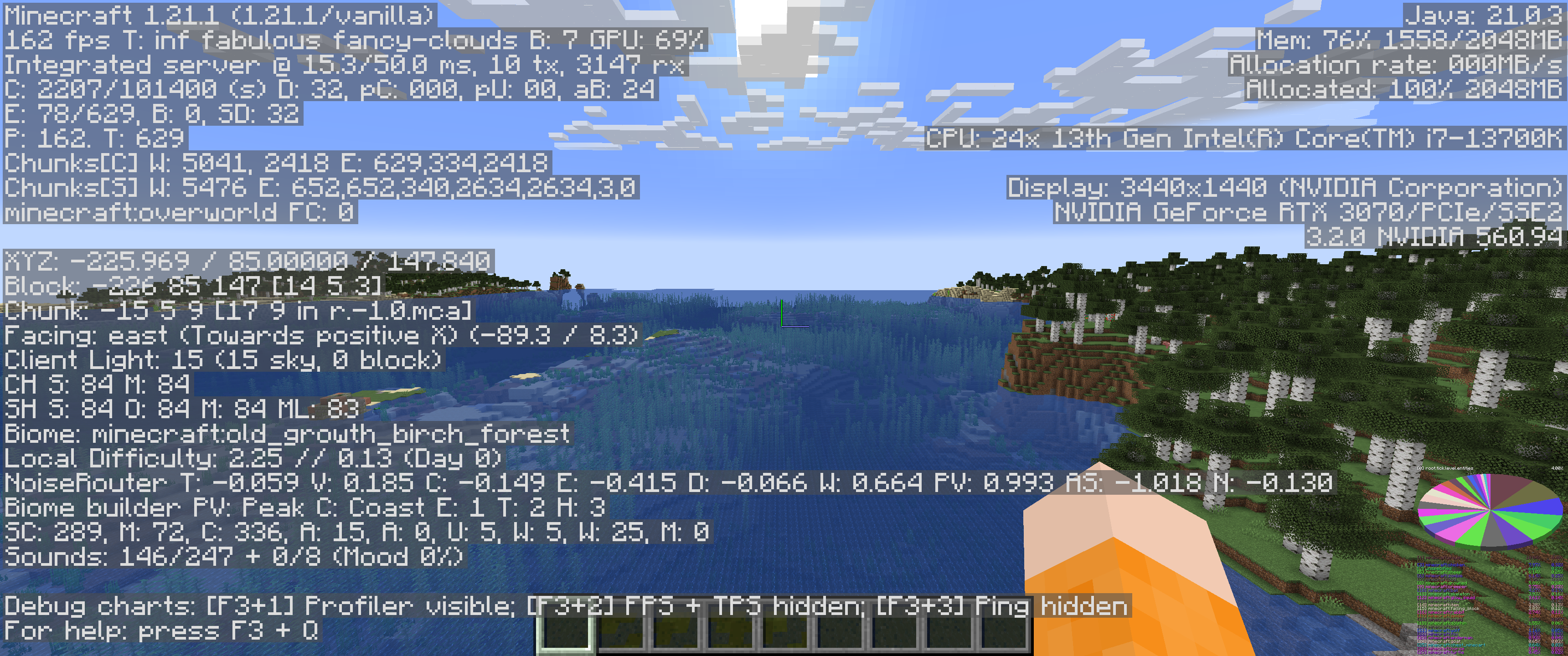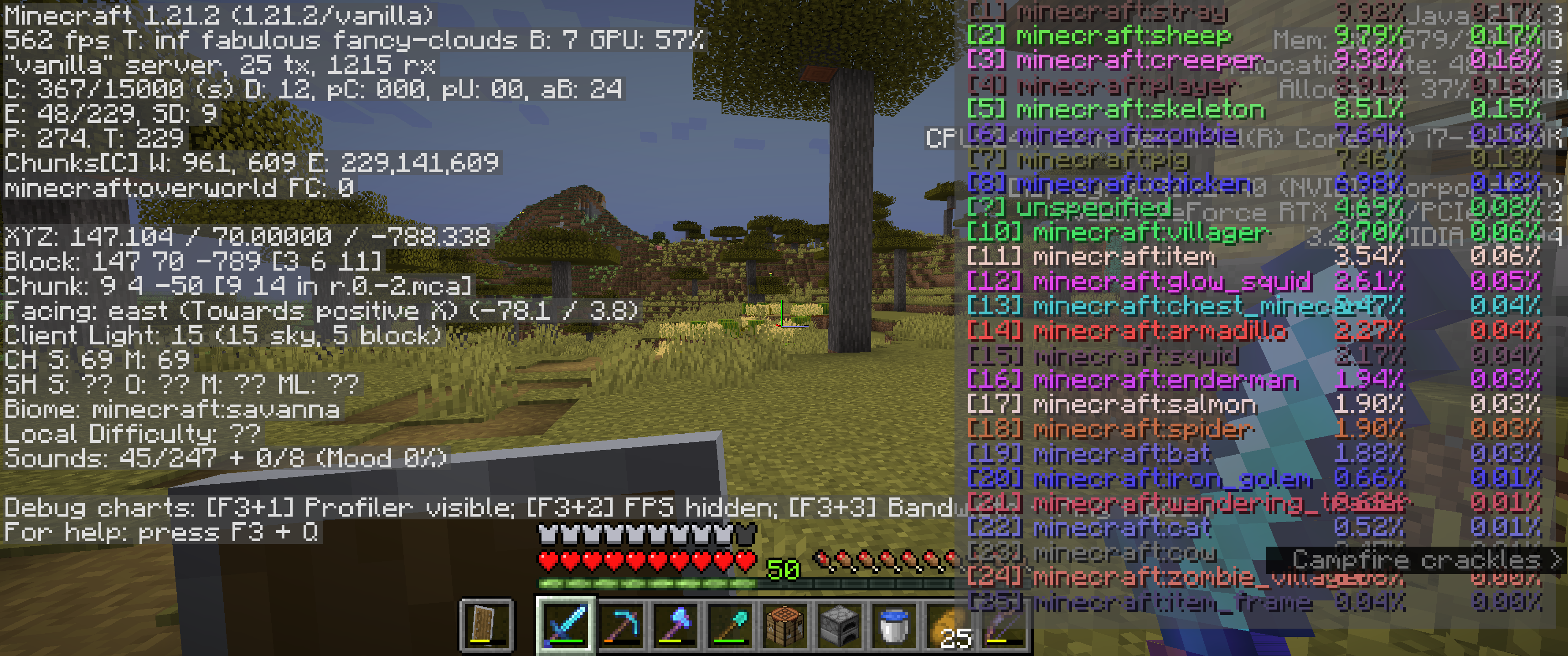 Once you open the pie chart you can press the number by "tick", then press the number by "level", and then press the number by "entities" to recreate the bug shown in the second screenshot