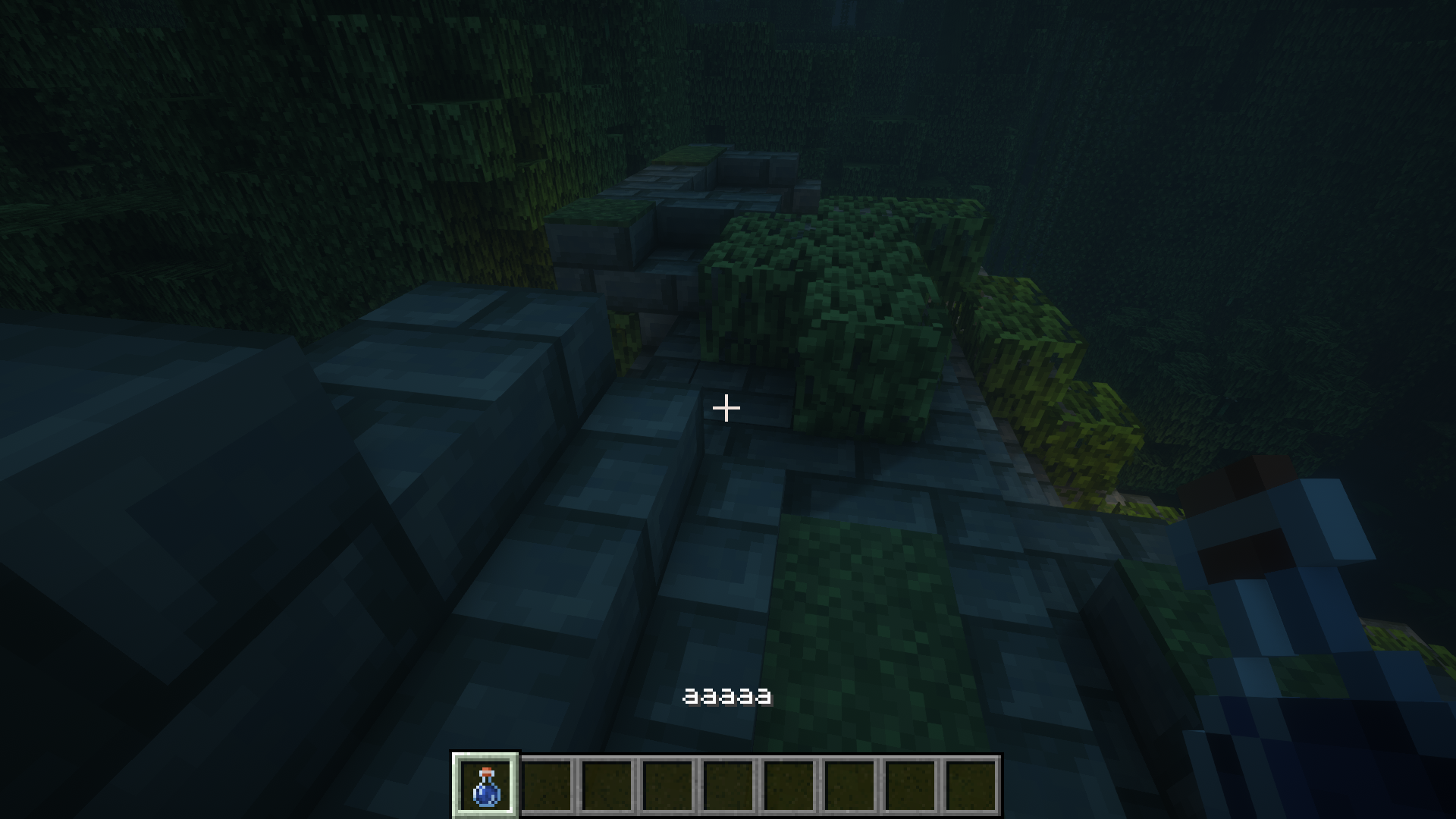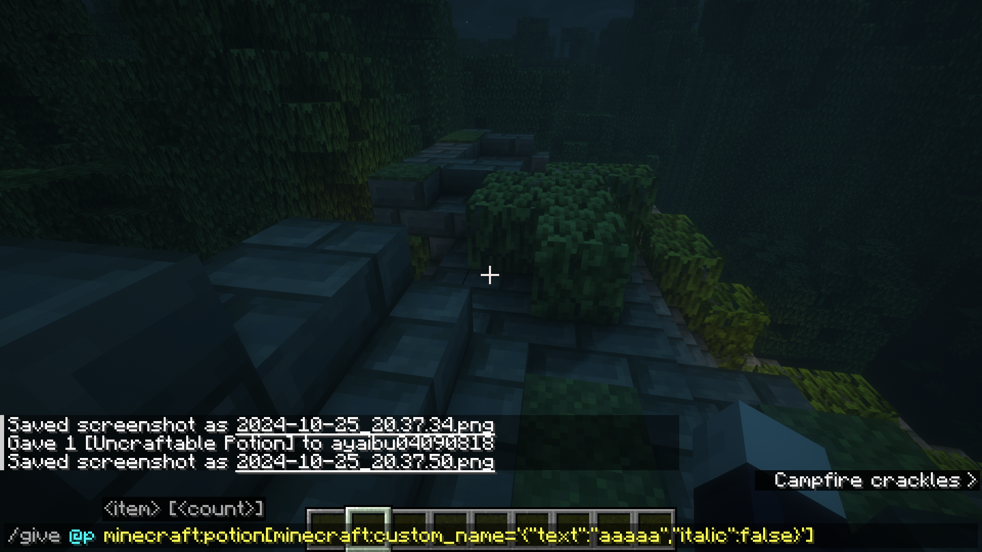 1. Type the command "/give @p minecraft:potion[minecraft:item_name="aaaaa"]".