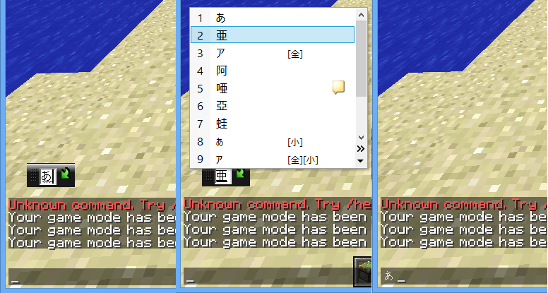 [System.Windows.Forms.SendKeys]::SendWait("γγγ―γγΉγγ§γ")How input from the Windows PowerShell script and the IME are handled in LWJGL can be easily checked with my small test program.