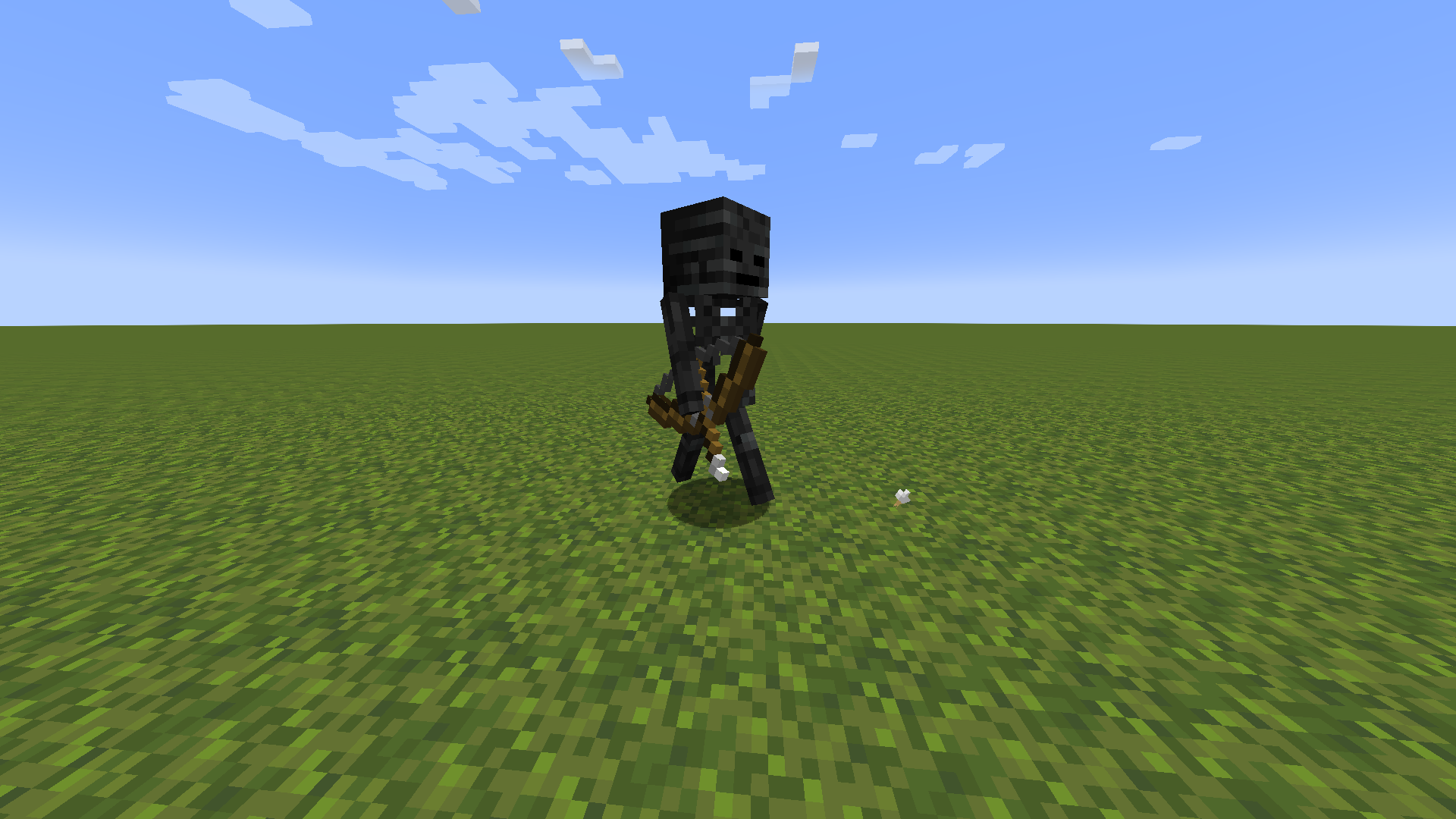 /summon minecraft:wither_skeleton ~ ~ ~ {HandItems:[{id:"minecraft:bow"}]}/summon minecraft:stray/summon minecraft:boggedGo into Survival mode and let the mob shoot you.