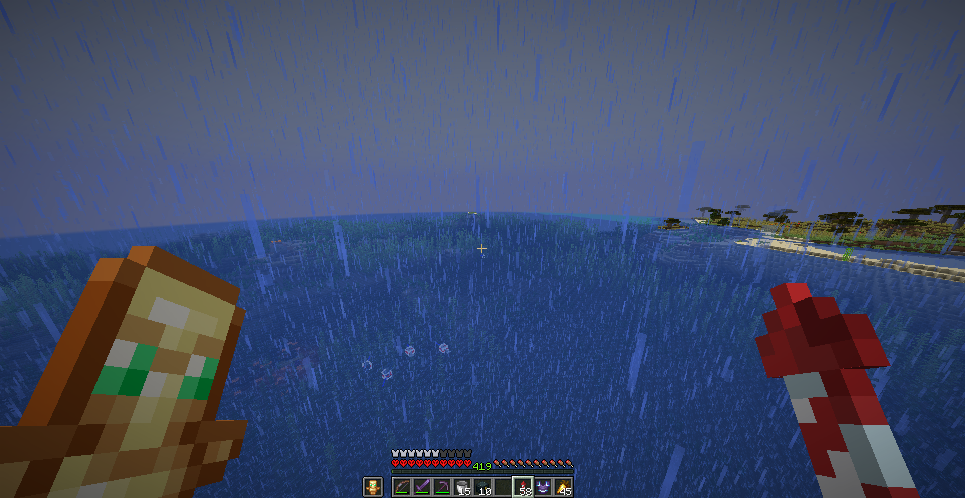 Attached are some screenshots I took of the world with hitboxes turned on to make it easier to see any entities. As you can see, there are no fish at all, only the occasional squid or dolphin. If someone asks, I can upload the world.