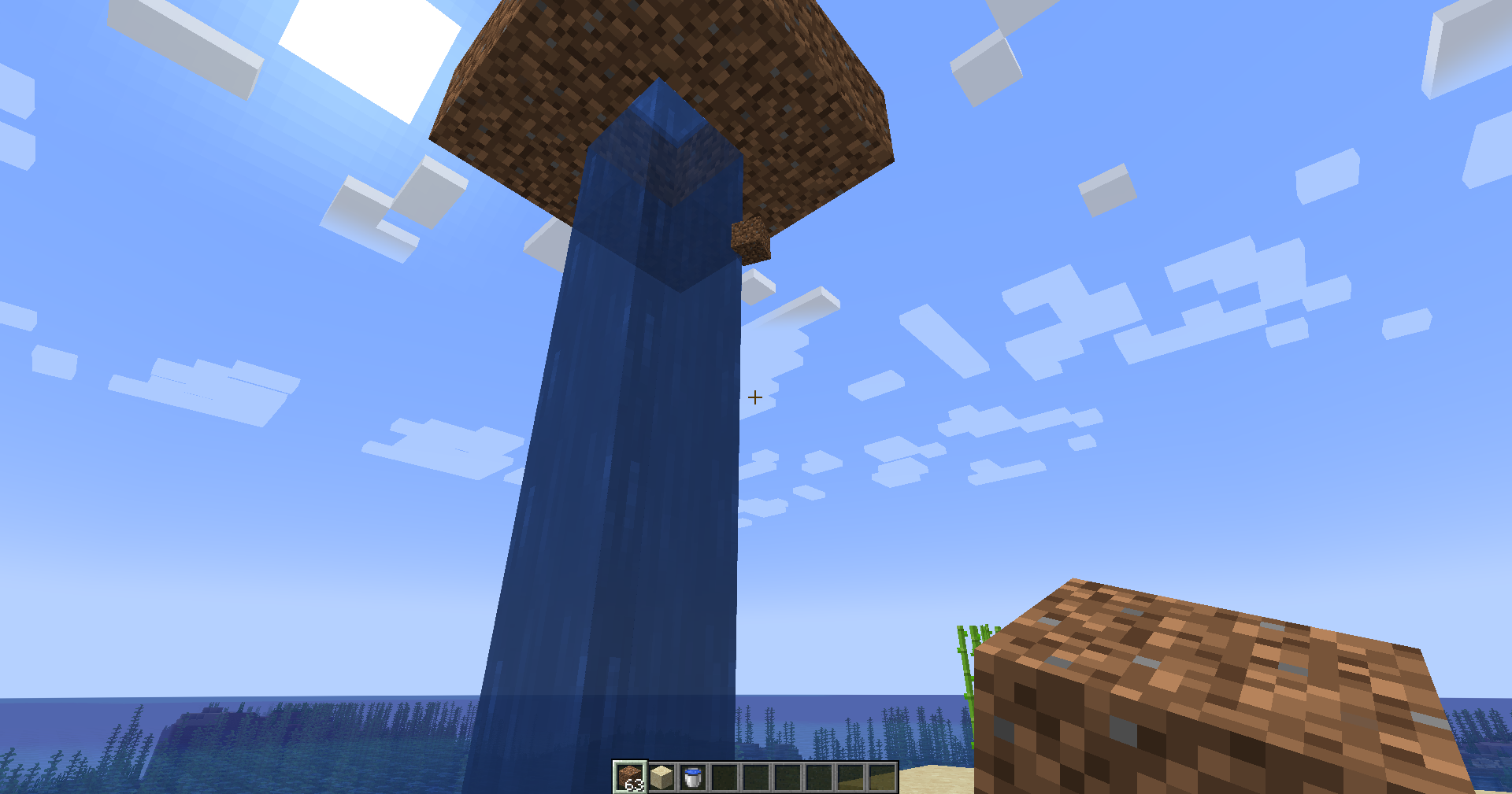When an item is dropped on the floor, just on the edge of the falling water column, the item will float upwards.