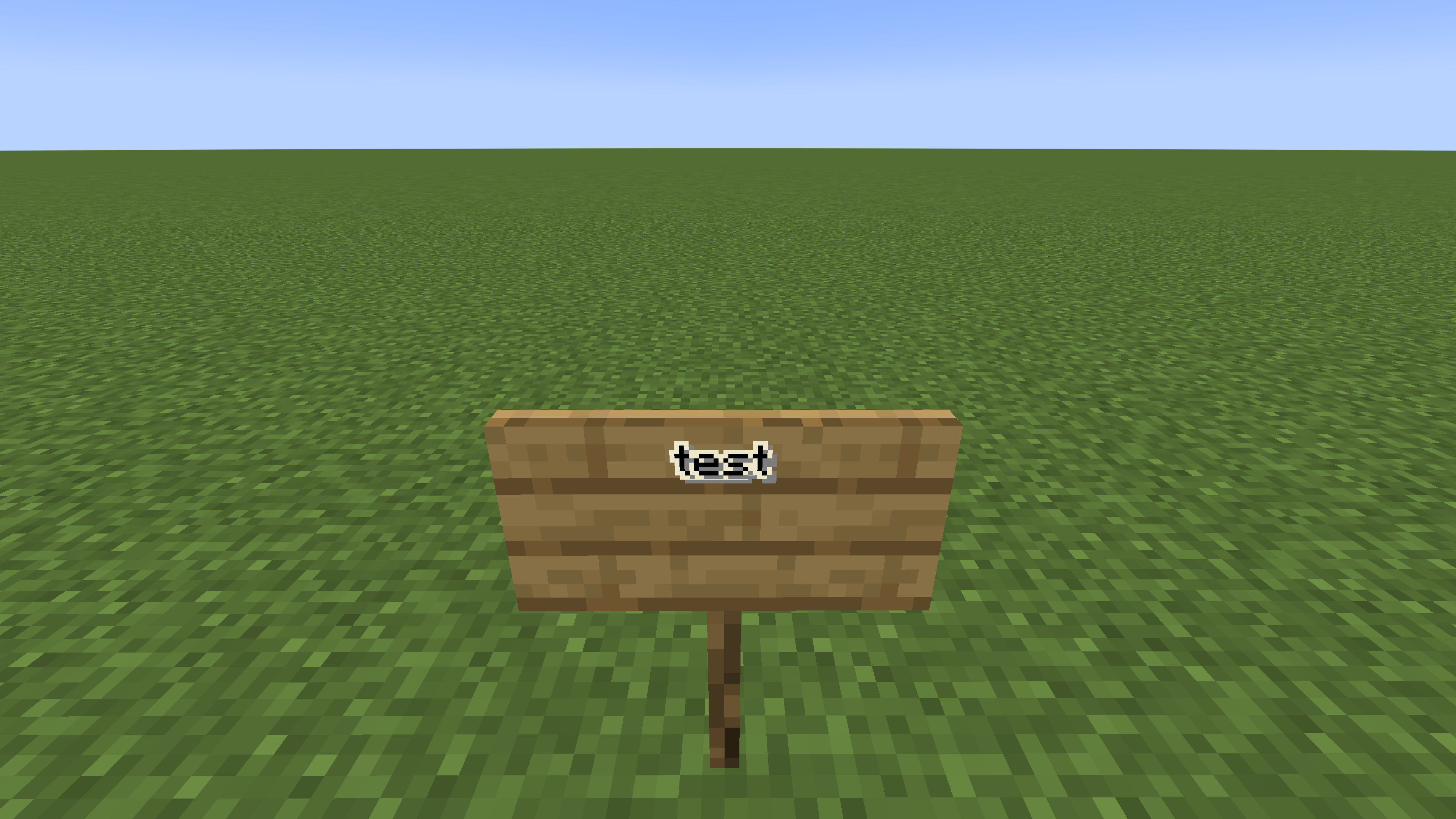/setblock ~ ~ ~ oak_sign{front_text:{messages:['{text:"test",shadow_color:[0.5,0.5,0.5,1.0]}','""','""','""'],has_glowing_text:true}}Observe the sign from different camera angles and distances