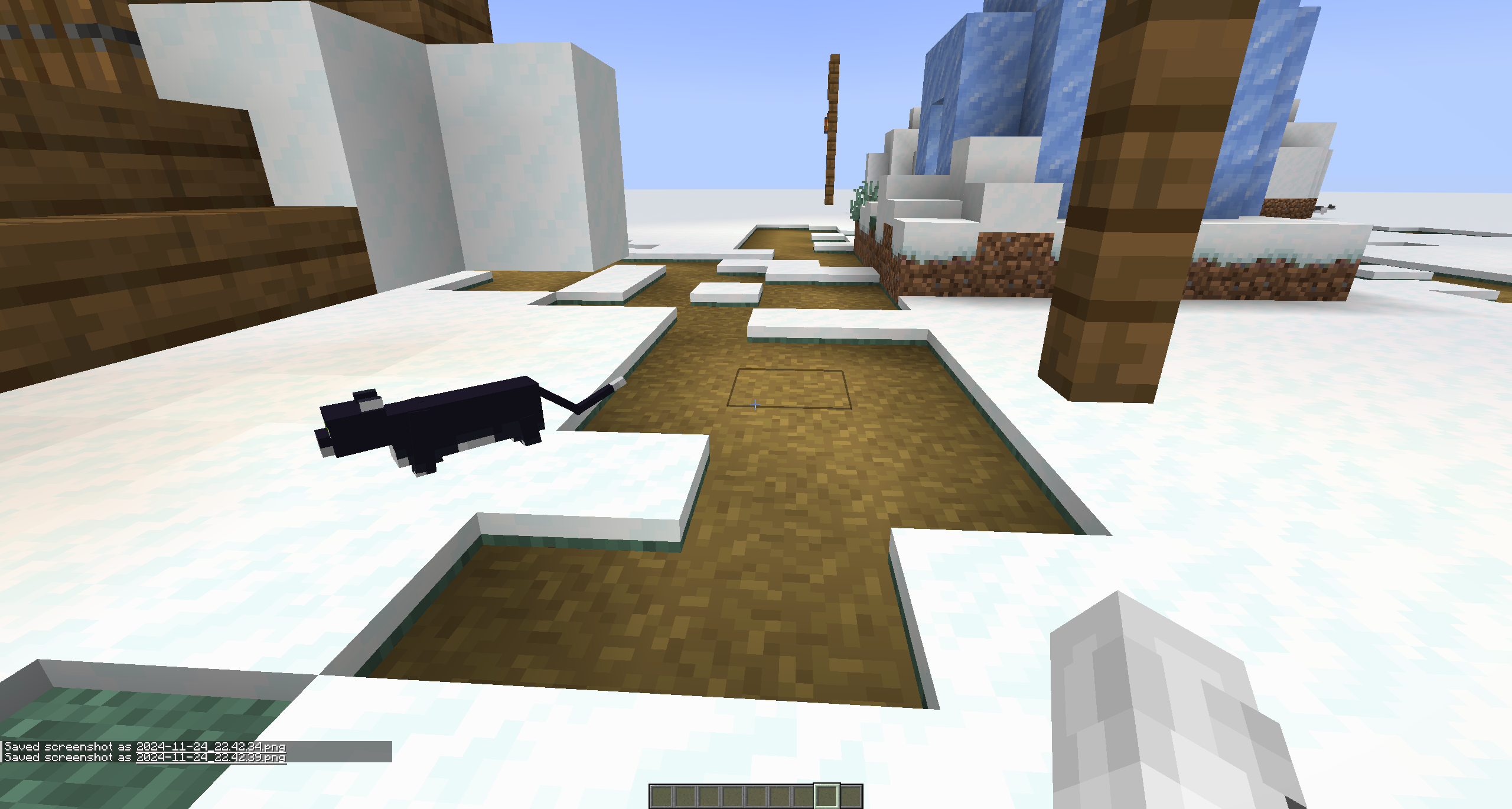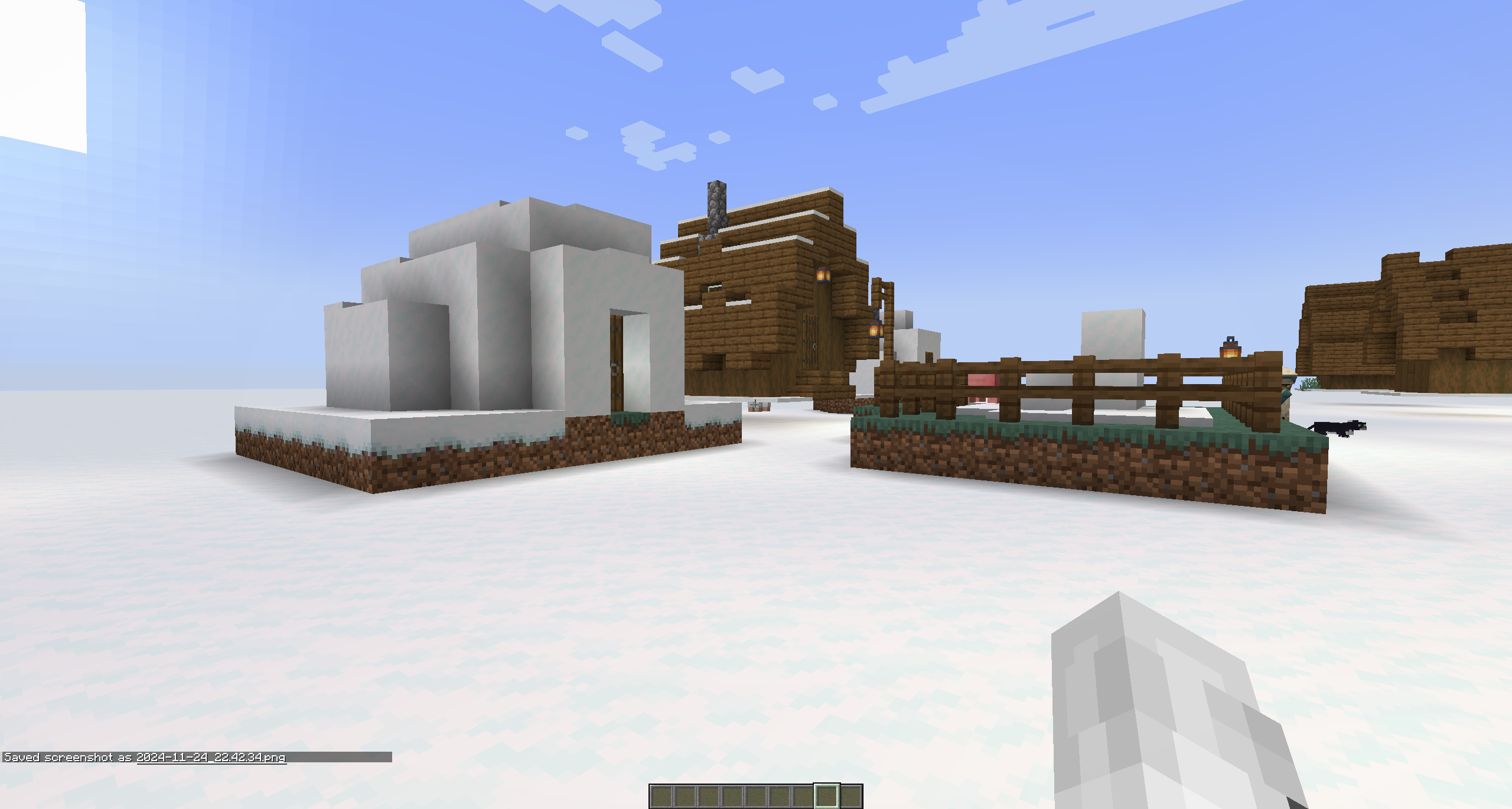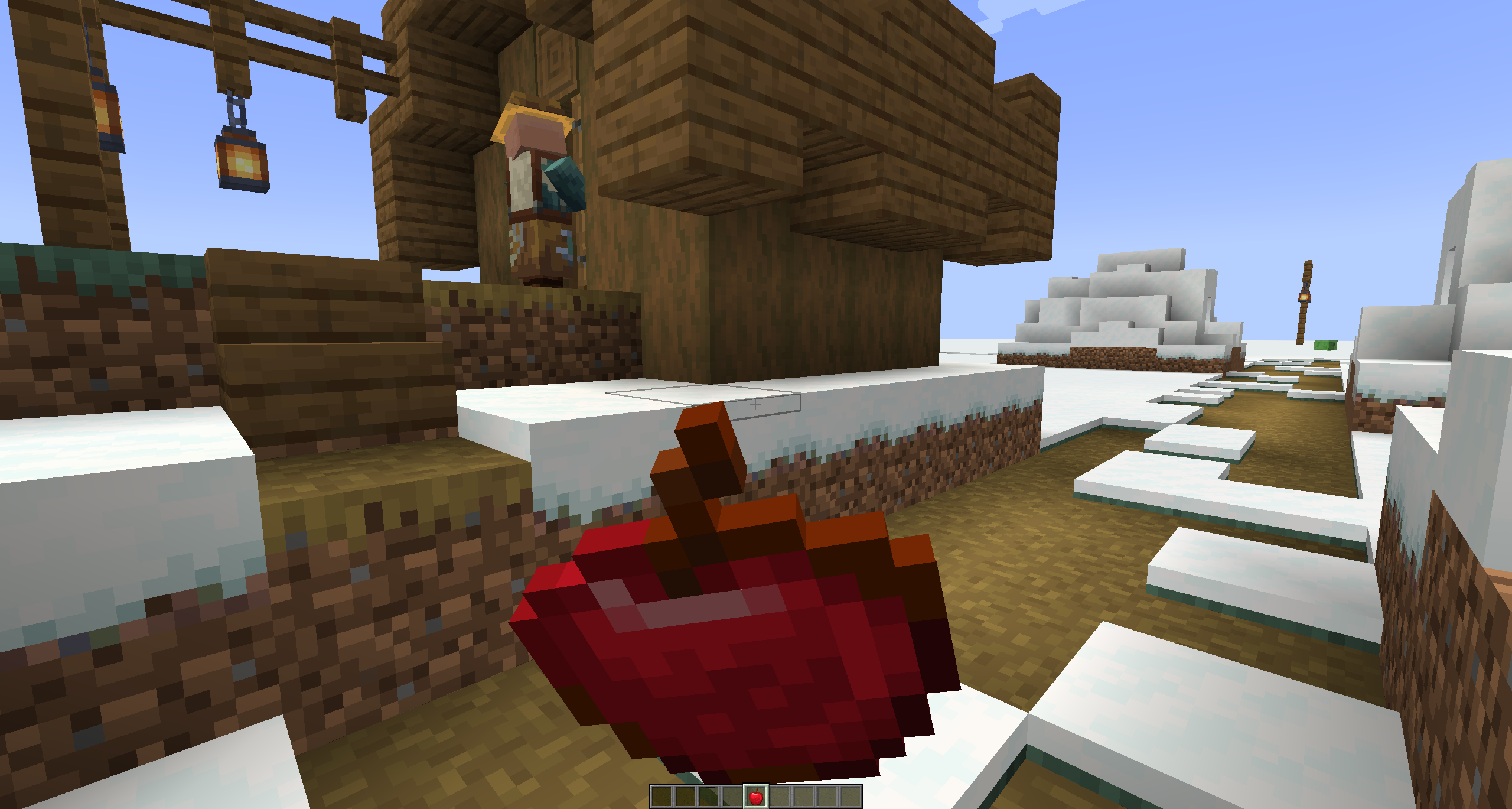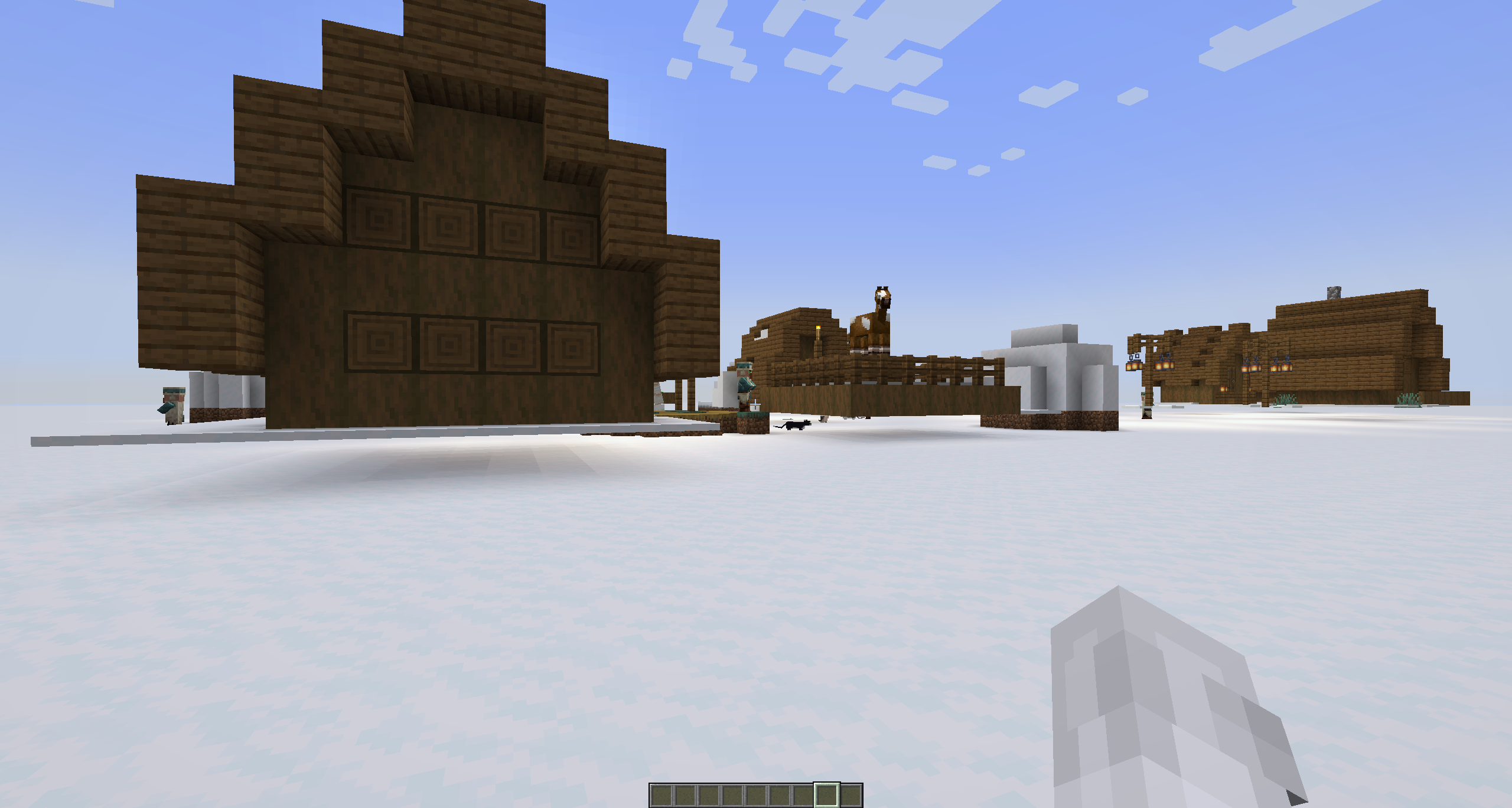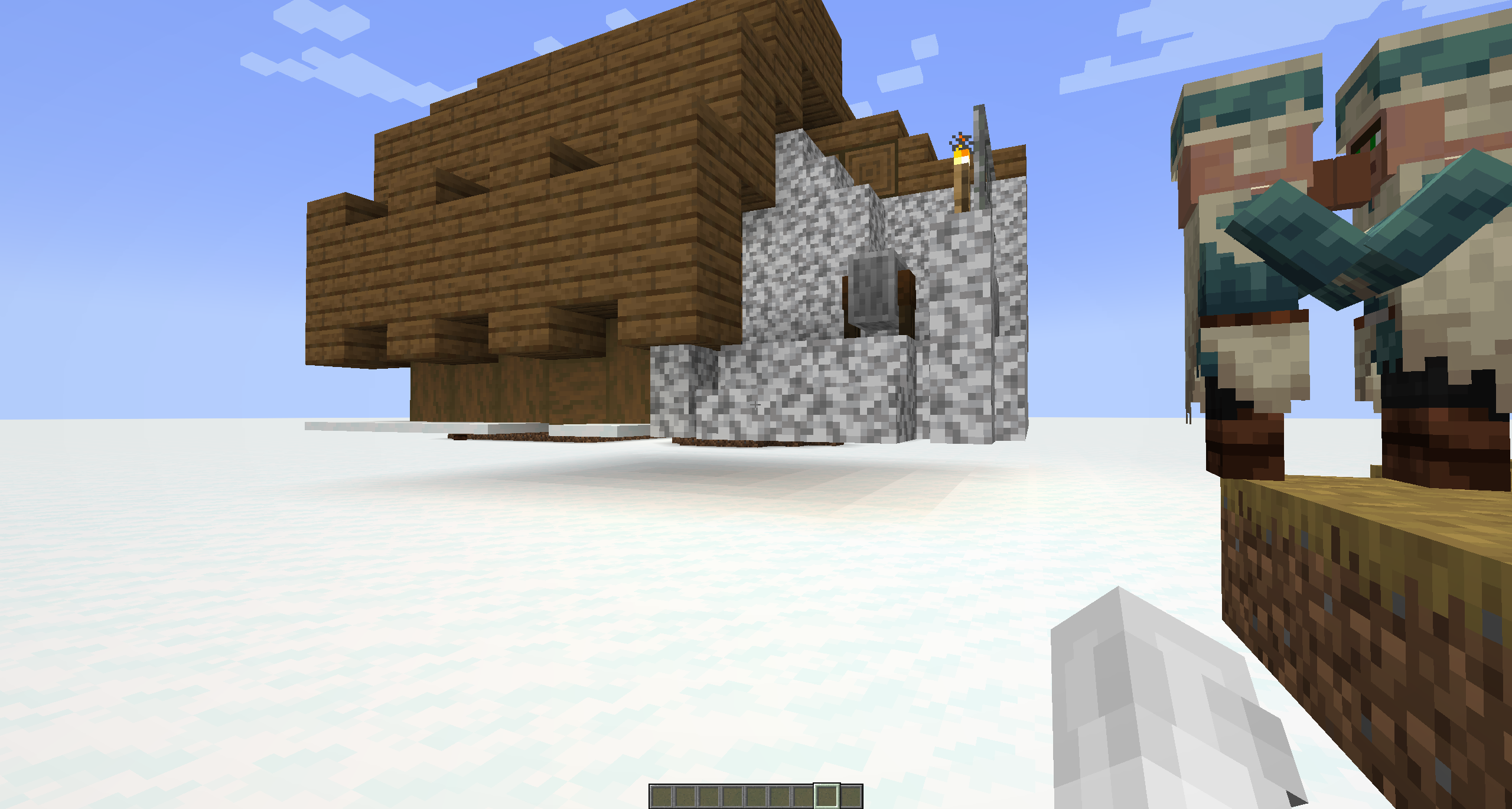 The villages' houses and nearby snow will floating in the air. When the game tickβ steps, the snow on the dirt path will break and make a very loud noise.