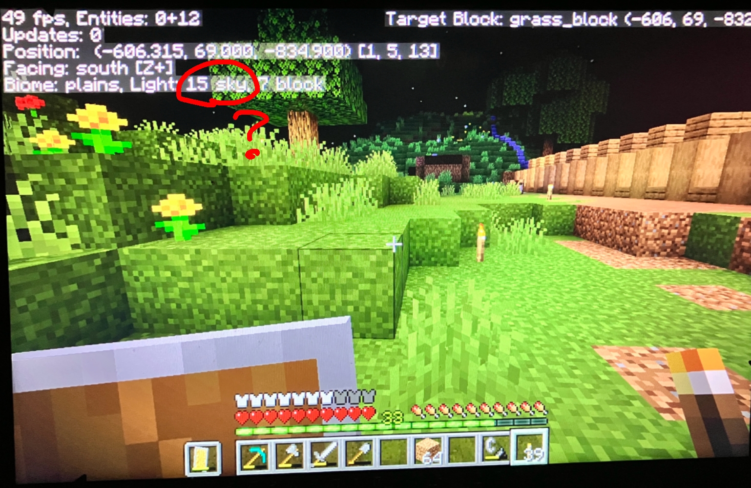 The light level indicator on my Quick Info menu says that I'm getting 15 sky light level during the middle of the night while monsters are spawning. It also says I have no light at all while I'm in the Nether, which is also wrong because I can see everything around me clearly.
