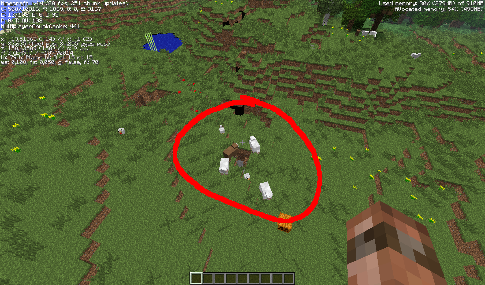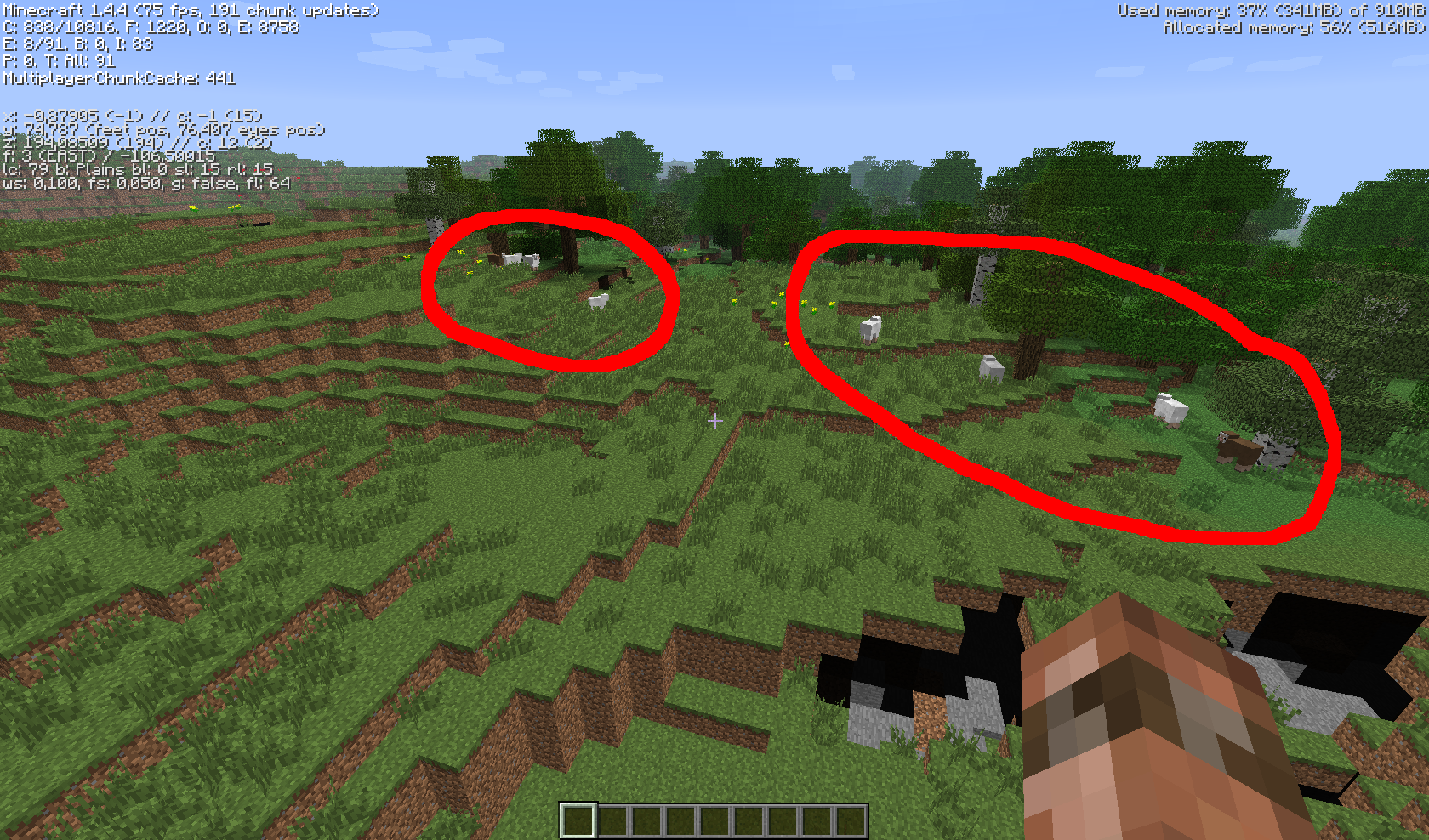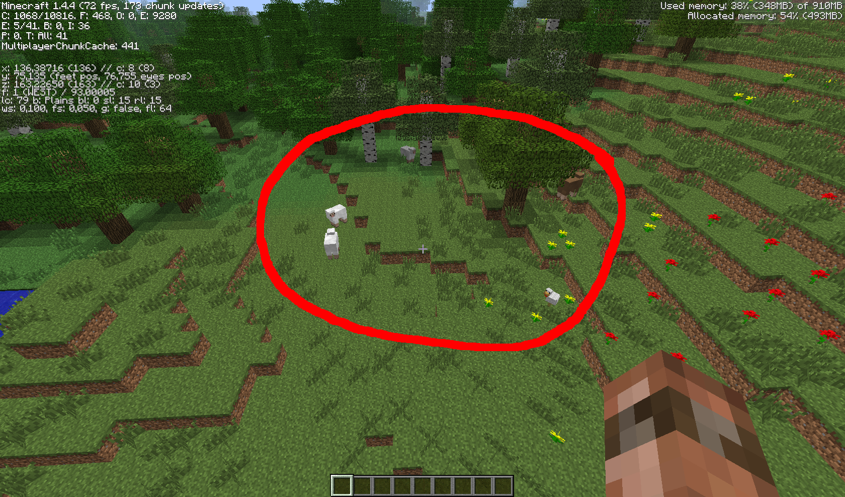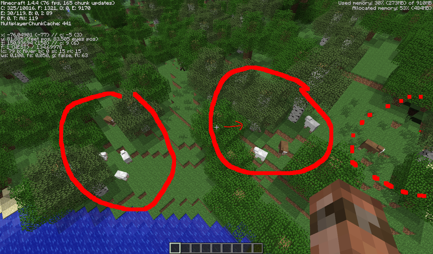 Note: This bug probably applies only to mobs spawning while structures are generated at the same time, if you search long enough, you may/will find different sheep groups.