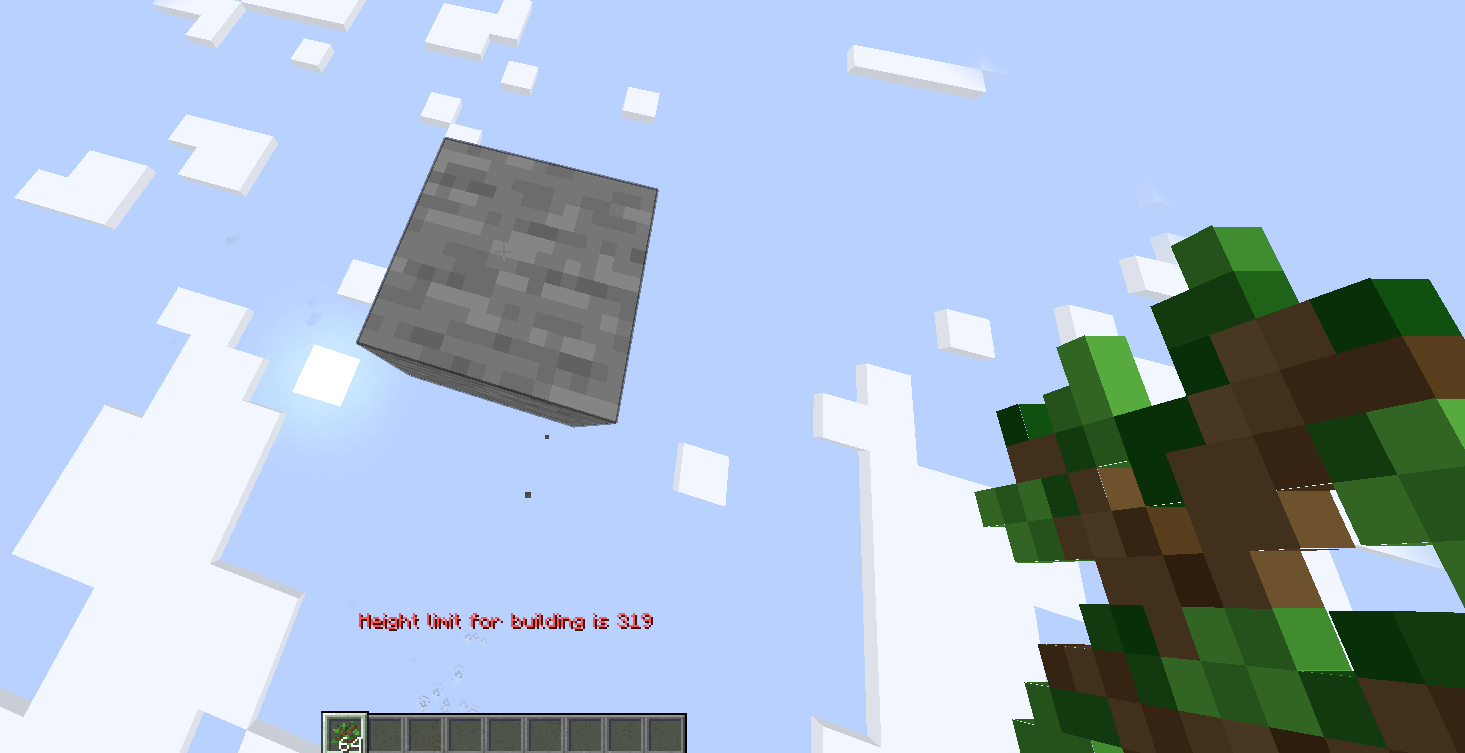 /tp @p ~ 320 ~Try and place vegetation on top of the stone block (example, a sapling)