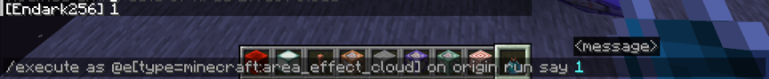 /execute as @e[type=minecraft:area_effect_cloud] on origin run say 1