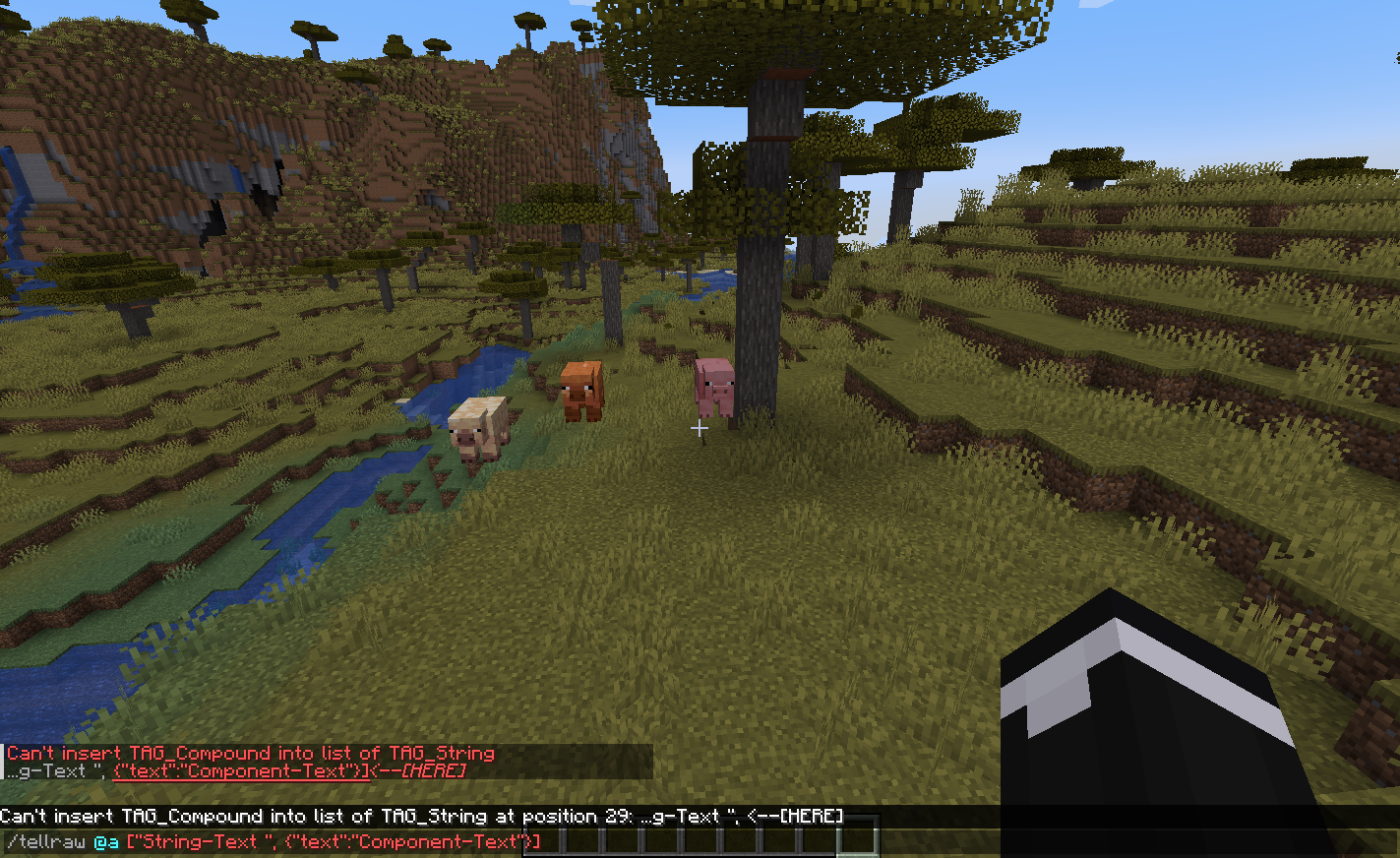 Can't insert TAG_Compound into list of TAG_String at position 29: ...g-Text ", <--[HERE]will be shown over the chat entry line.