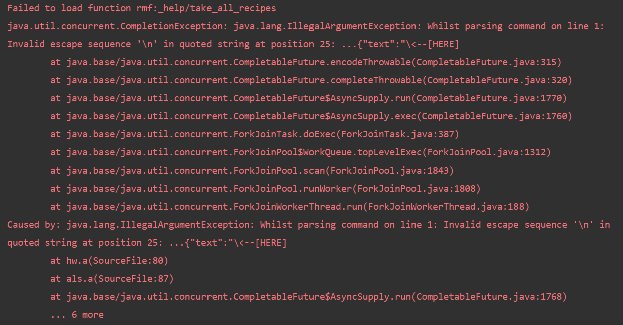 In previous versions, the usage of JSON for text components allowed for the unicode escape syntax \uXXXX to insert unicode characters. SNBT does not support this, resulting in a feature regression.
