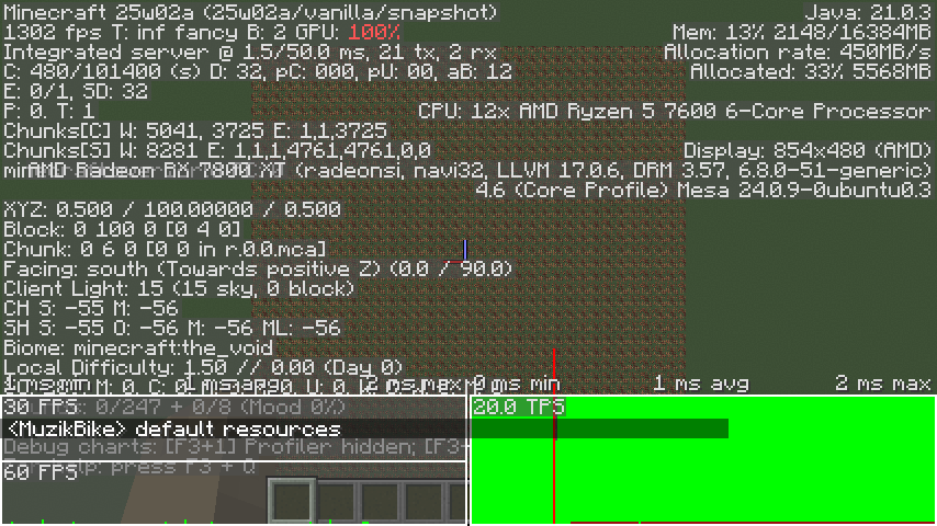 /tp @s 0 100 0 0 90Compare framerates with and without the attached resource pack using F3+2