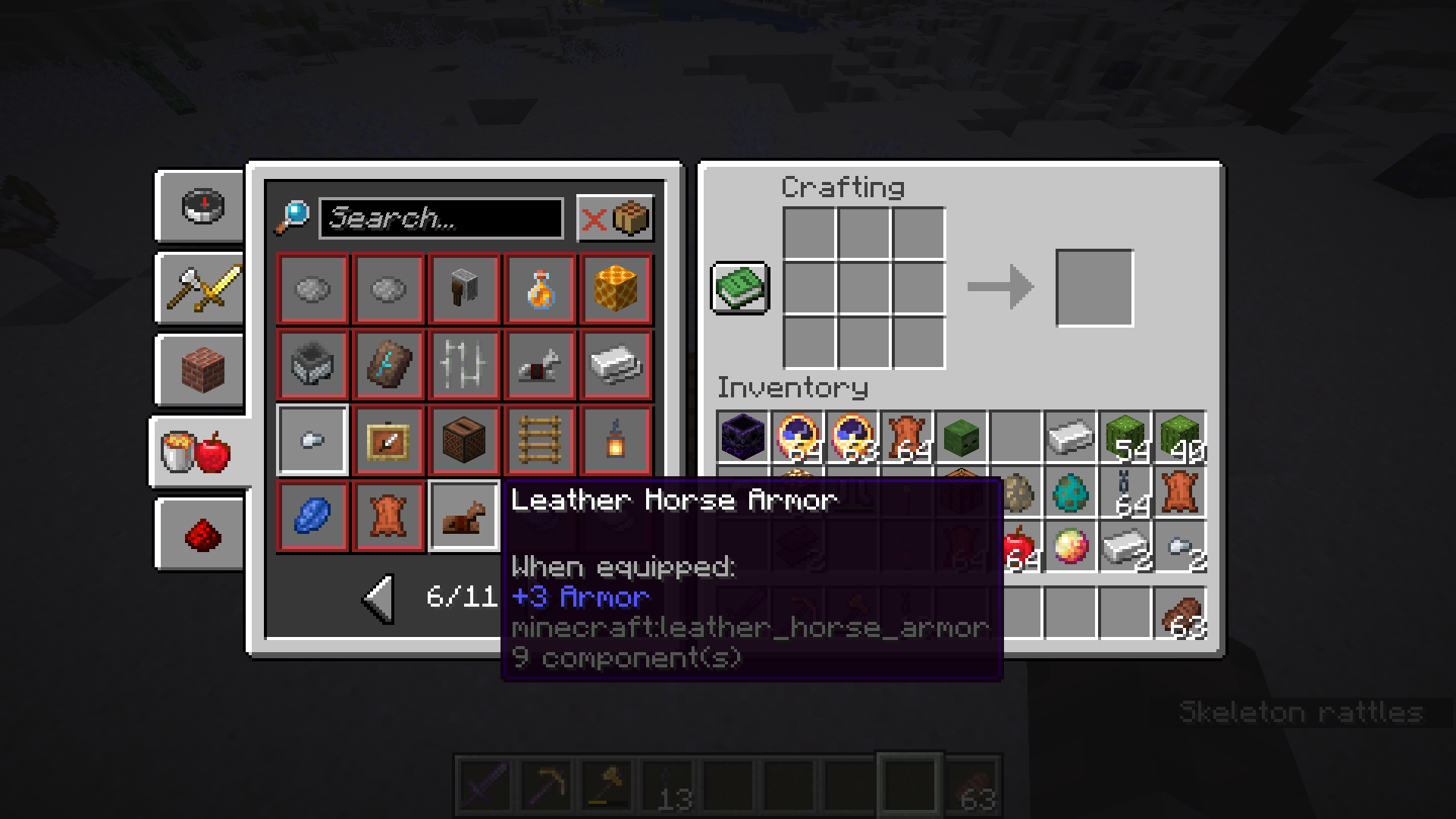 Pretty much what the title says. In the recipe book, Leather Horse Armor is found in the misc tab, but Wolf Armor is found in the equipment category. Both are animal armor, and both are 'equipment', so it doesn't make sense to have Leather Horse Armor in the category it's in.