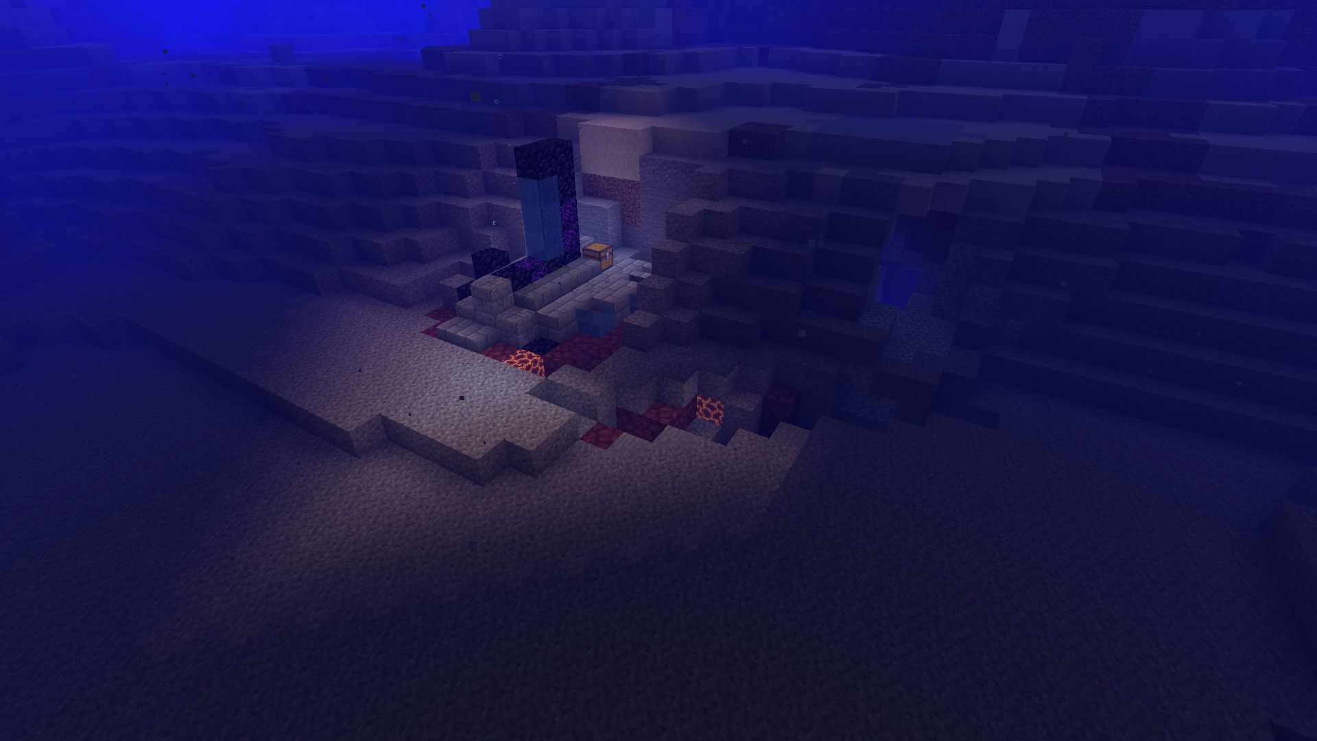 Fly in the positive X direction until you see a submerged ruined portal at approximately 330 390.