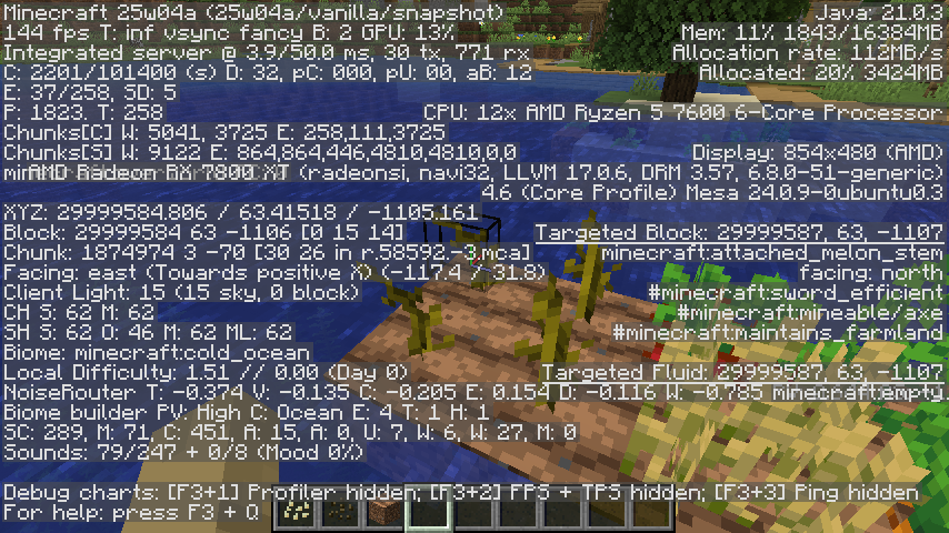 Look at a melon or pumpkin stem, wheat crops, carrots, potatoes, beetroots or nether wart