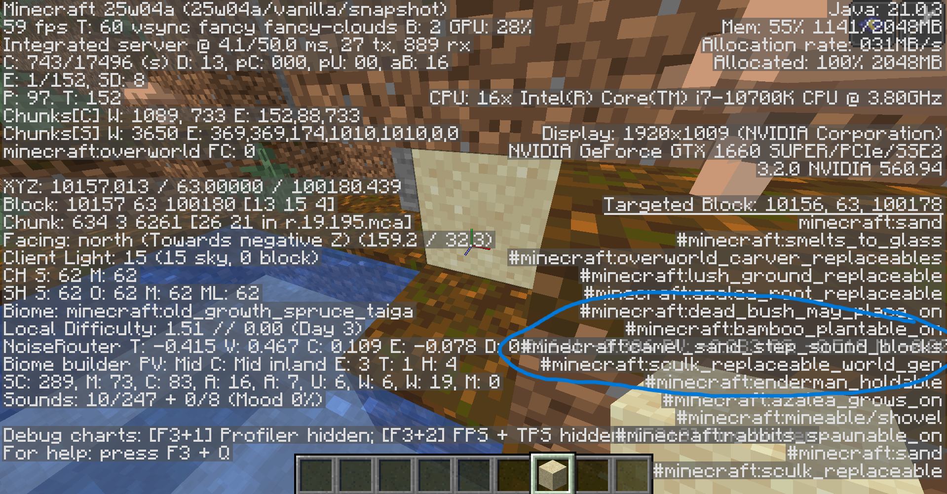 Click F3 and look at, for an example, sand and you'll see that NoiseRouter text and Target Block text collide, which makes it really hard to read what's written there.