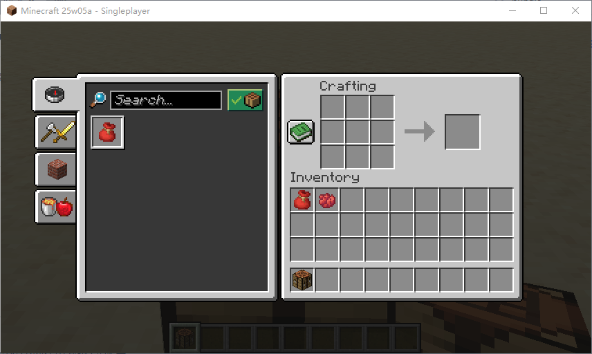 When bundles and dyes with same color in inventory and open craft menu,the recipe icon still in menu,when click the icon and place items in the slot,nothing will show in the right slot and can't craft anything.