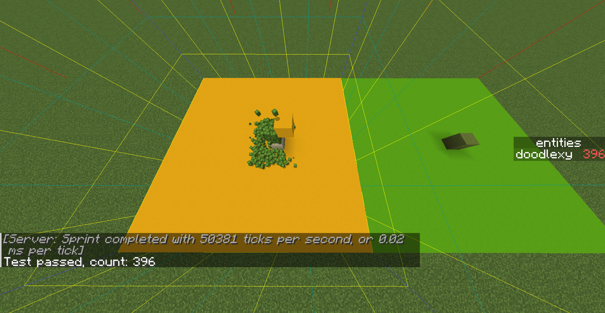/scoreboard objectives setdisplay sidebar entities3. Enable the Chunk borders display using F3 + G and Stand somewhere within the middle of a chunk. Place an easily discernible block to mark this chunk so you don't lose it.