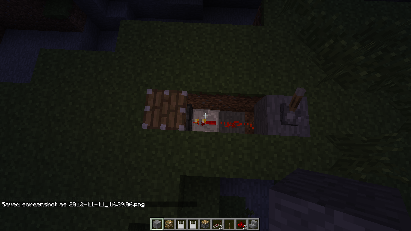 1. Dig Hole 2 Blocks deep, 4 Blocks across.