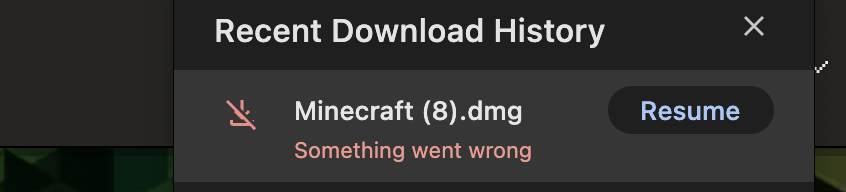 I've been looking to download minecraft on my Macbook Pro, and tried using the launcher via minecraft.net (https://www.minecraft.net/en-us/download ). When I go to click the launcher, it says something went wrong, and when I click resume, it goes for a second, gives me an option to open, then says it's removed.