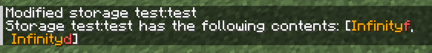 /data get storage test:test footo get the data✔ Observed: data gets stored as Infinity