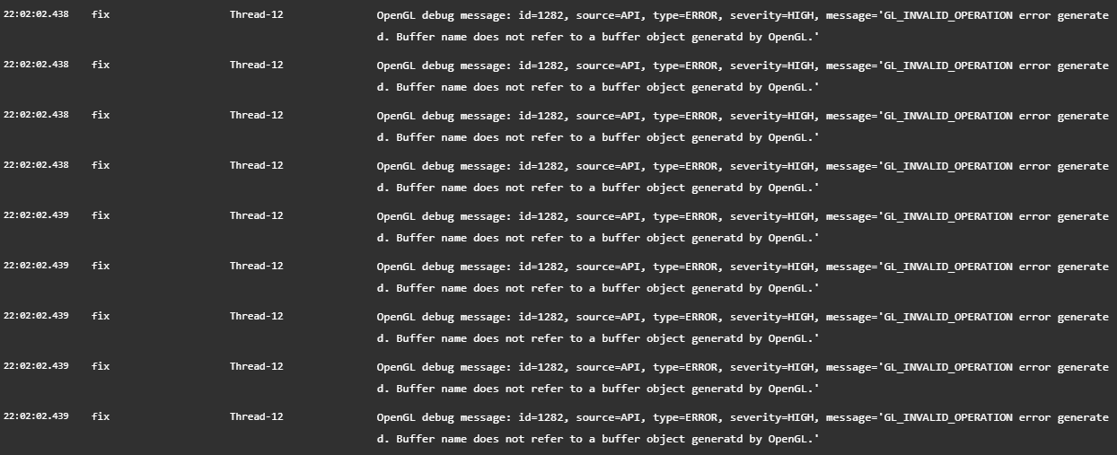 I am getting various OpenGL errors when doing about anything in the game, but I can’t reliably find what might cause it. Sometimes happens on menus, when entities are present, breaking blocks or loading chunks.
