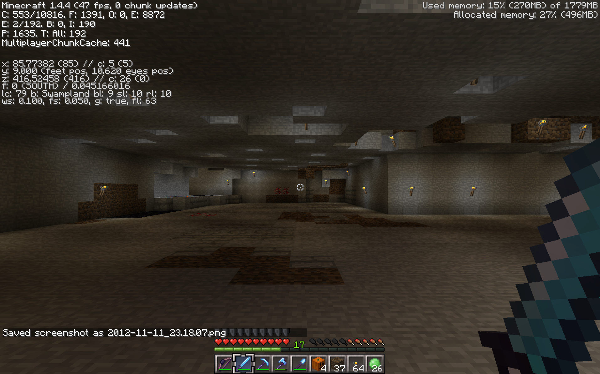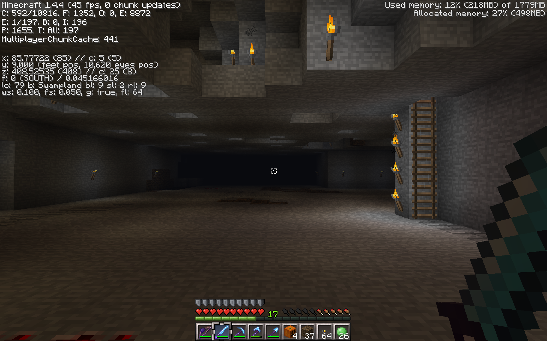 I'm in a large room at y=9, and the center cursor is pointing at a wall at z=450.