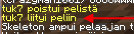 In the chat, when someone joins, it says "PLAYERNAME liityi peliin".