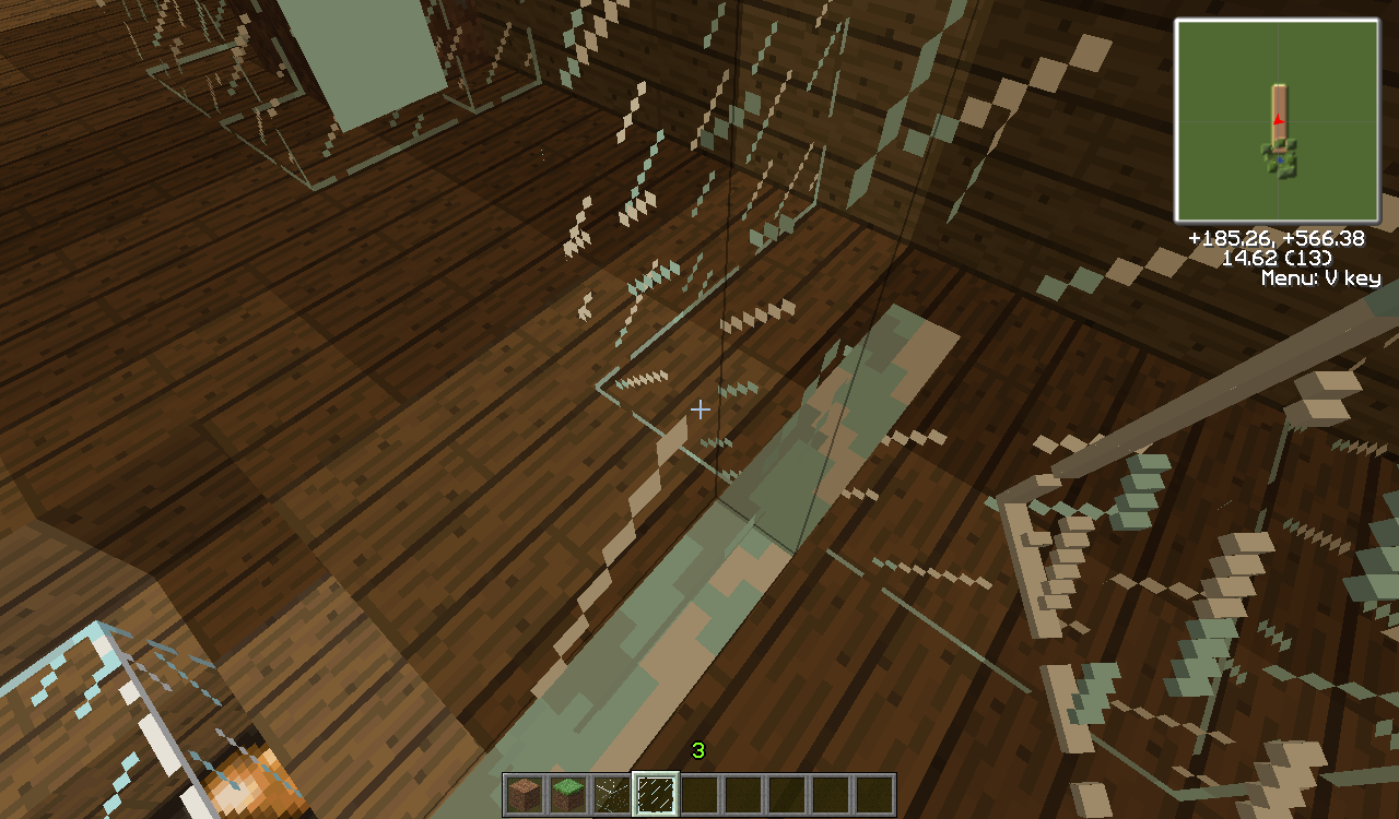 while jumping i placed a glass pane where the players legs were, then fell and my head was in the glass pane.