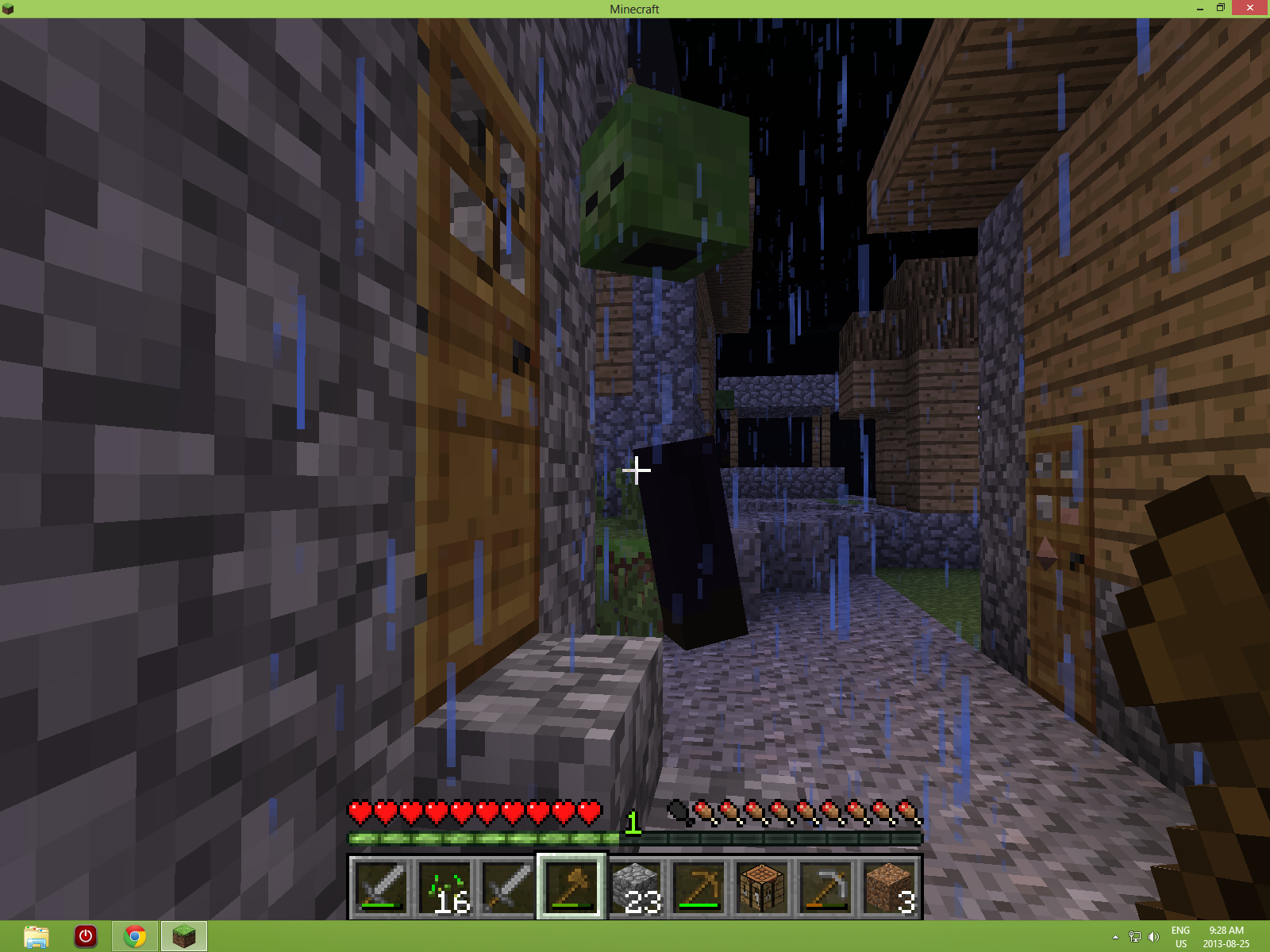 I was playing survival single player, when saw strange flat structures in the air that would move constantly, then I saw zombies with only a head and a leg, then spiders with only 3 legs, also i had to take a screenshot of desktop because it ran out of memory every time I took a screenshot through minecraft , when i pressed f3 it was only using 23% of allocated memory.it is not a texture problem because i switched to another ressource pack and there was the same graphical glitch(as shown in screenshot 15)