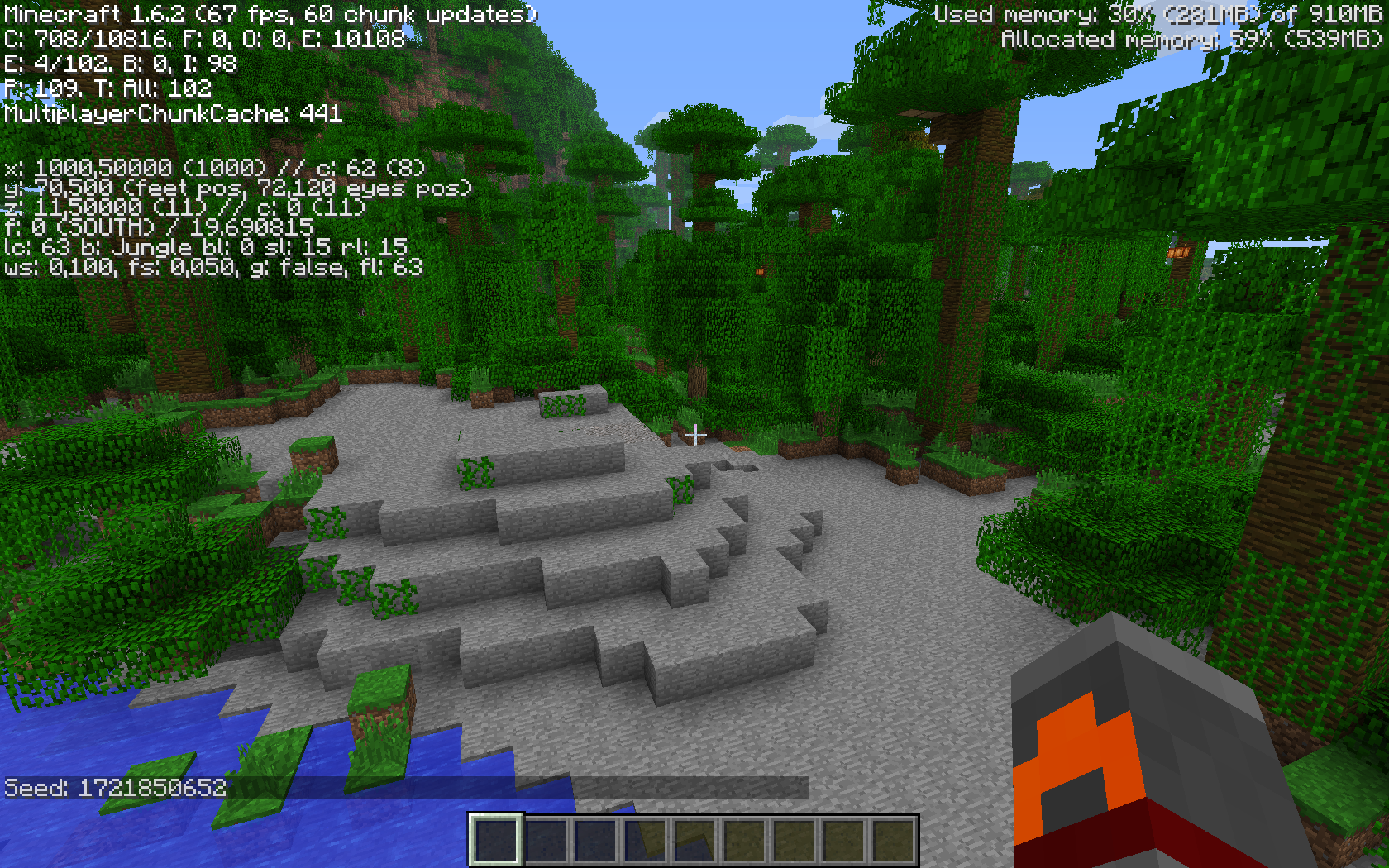 1. Create a MC world with a random seed (1.6.2 and modless)
