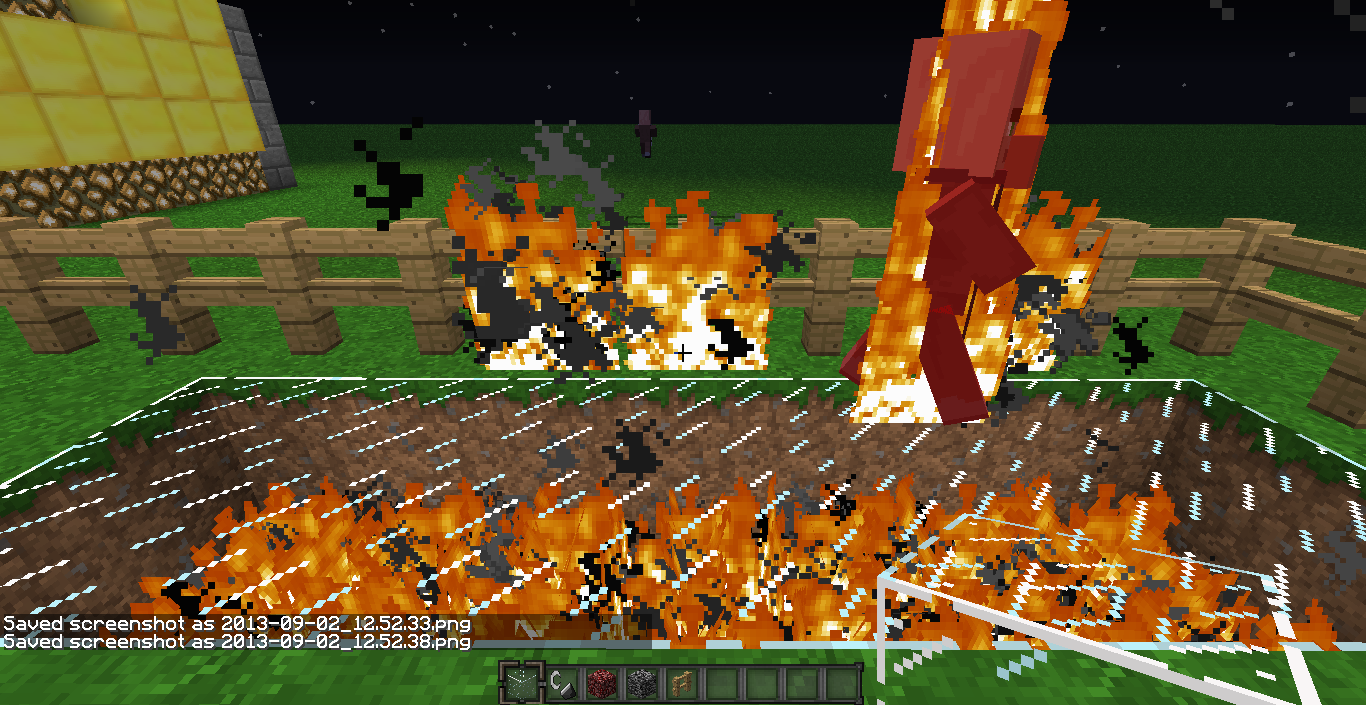 I was on superflat. Dug down to bedrock placed netherack, lit it on fire with flint and steel. then placed glass one block above the fire to keep it covered. I had fences 1 up and 1 over from the glass and they caught fire.