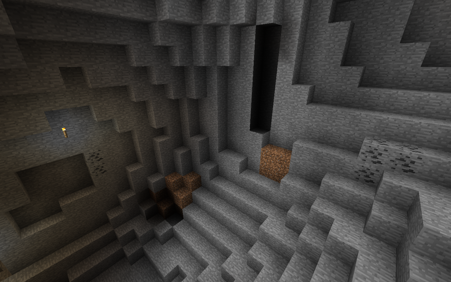 3. Noticed edges of a glitched areas were at a chunk boundaries (in their found state, not after adding blocks as mentioned in #2), but not necessarily in a single chunk (some extend through multiple chunks). There are some exceptions though...I think I noticed an organic shape in one area...