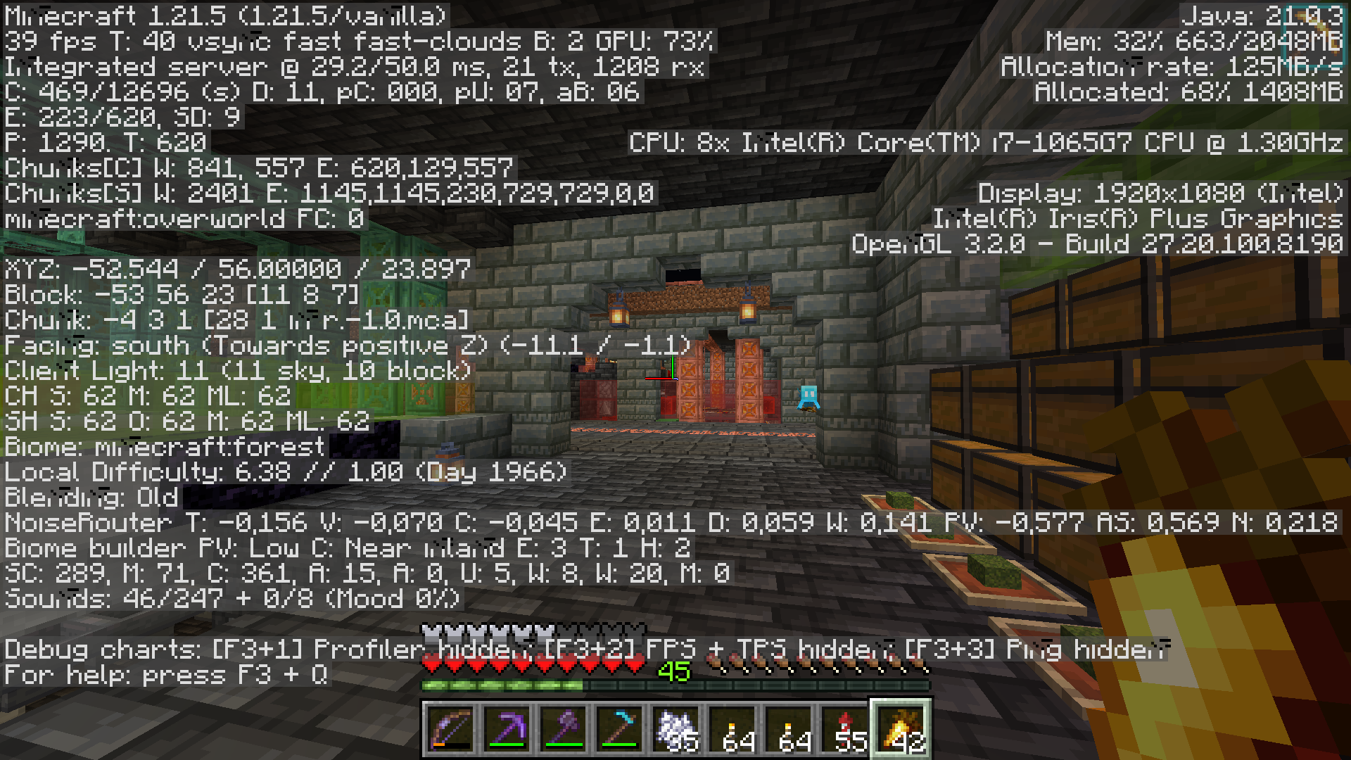 After a little while of playing on my world (about 20 minutes maybe) these weird glitched graphics appear on textures at random and stays like that until I leave and rejoin, not consistent what graphical elements it glitches, but it’s consistent in happening. The game screen also freezes randomly, can still play but I just see a static screen of whatever the last rendered frame was.