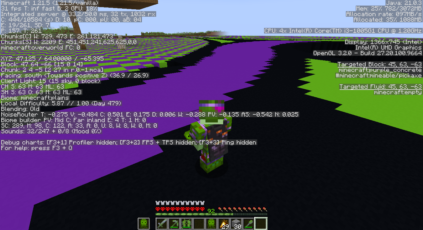 Hey @MrMuskle I thought the problem had been solved, however today I played again and the same thing happened, only more violent, I managed to record in time and I will upload it here since the game ended up crashing, I attached a photo of my F3, the photo is after all the glitches passed and I closed the game, yes, this time I had to turn off my laptop because the game crashed my entire laptop when I closed it, I don't know if it is another bug.