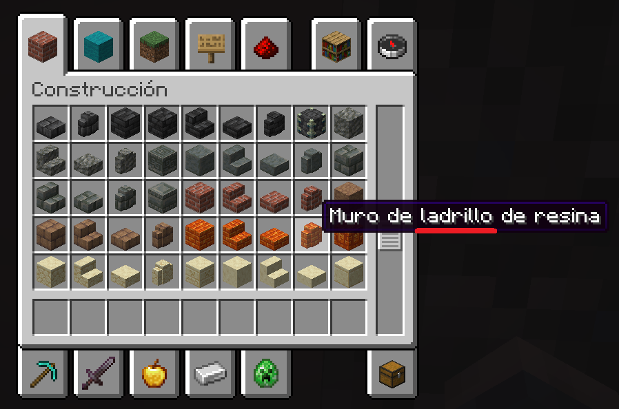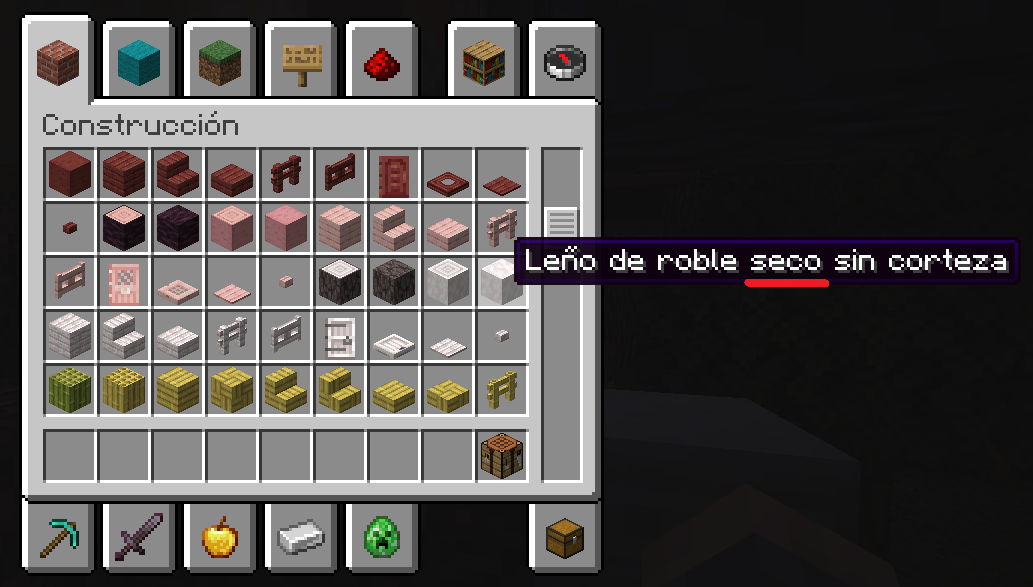 At this point, I didn't see any other spelling details in the options menu, so I decided to take the time to create a world in creative mode and see all the blocks and items in the game. Among other things, mainly, the only thing I could see was what I show and explain in the following images: