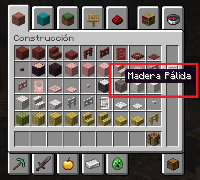 Image 18: "Madera Pálida" makes sense, but this specific block is the only one in its class that doesn't have the word "Leño" in its name, so it doesn't fall into the "Leño" category like other wood types do