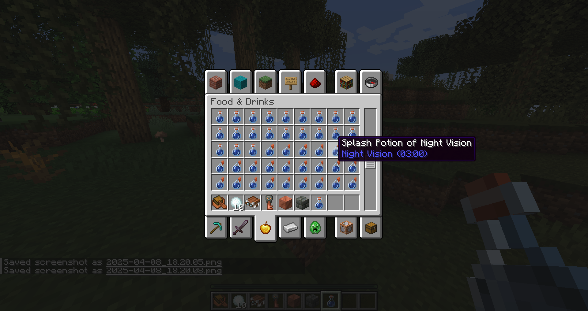 Potions and arrows with effects are not displayed correctly in the creative menu