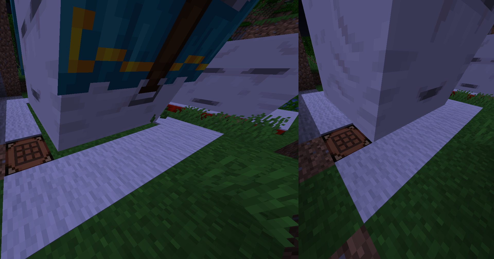 Screenshot 2: Comparison between the Happy Ghast (left) and the normal Ghast (right)