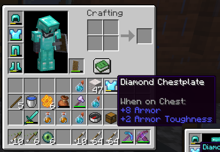 If you have any items such as tipped arrows, enchanted tools and armor, or potions, they always inherit the first color and visual effects that appear in your inventory.