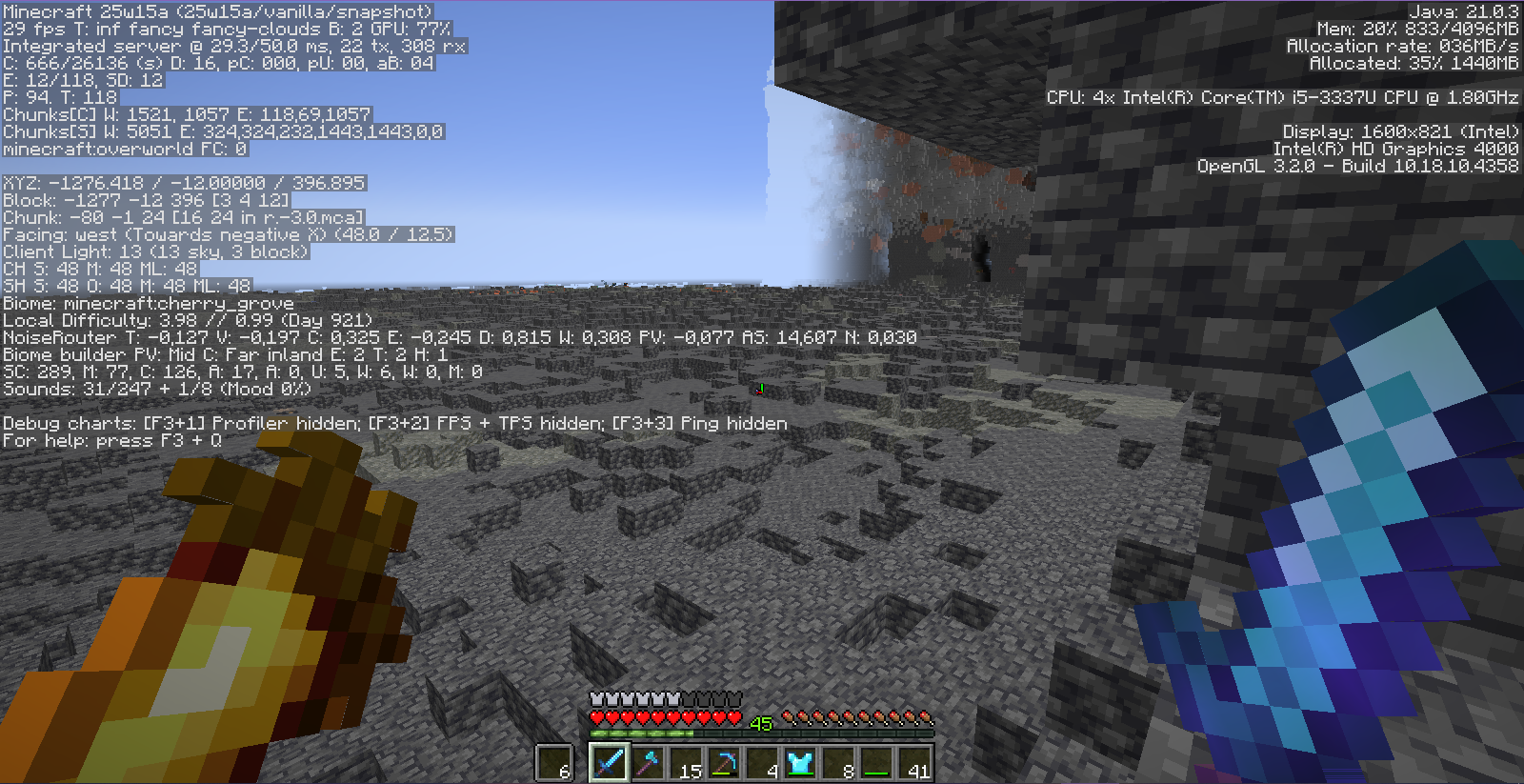 Please attach a screenshot of your debug screen, which can be enabled by pressing the F3 key. If possible, please also record a video of this issue occurring and attach it to this report.