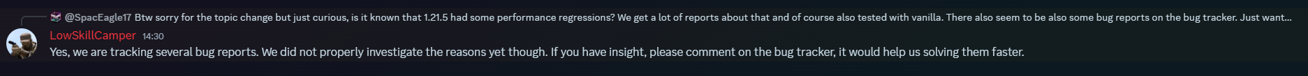 I get 300 FPS with 80% GPU usage on 1.21.4 using complementary unbound shaders, and on 1.21.5 with the same settings i get 100 FPS less and 100% GPU usage. These performance regressions on the vanilla client could be due to many things and should immediately be looked into by Mojang.