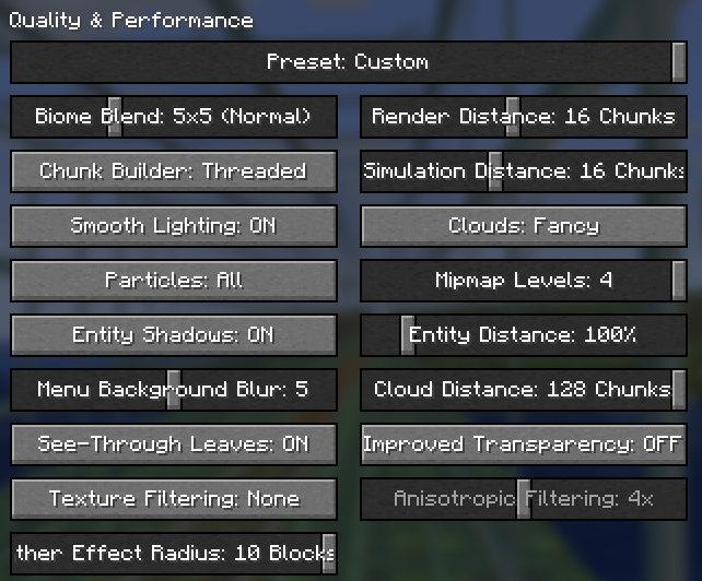 Could you upload a screenshot from the Quality and Performance settings?