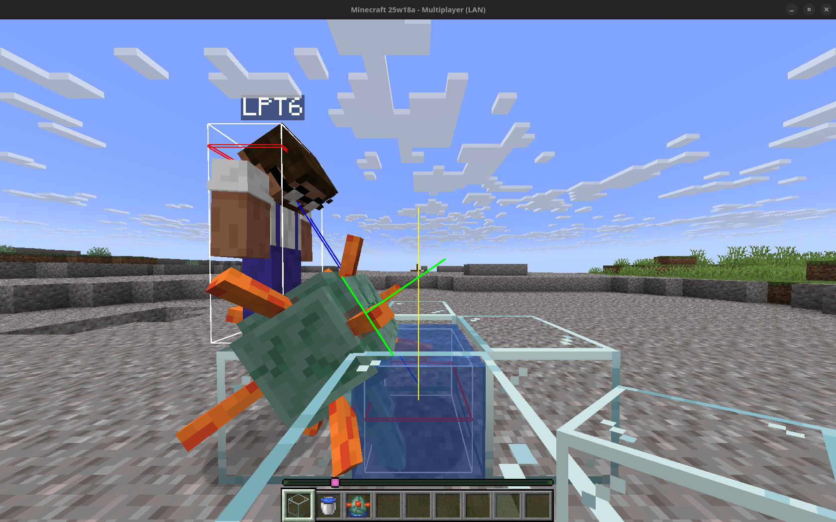 Attached is a screenshot demonstrating the issue in 25w18a as viewed from the side, with added lines to create a very rough approximation of the guardianβs center of rotation in space.